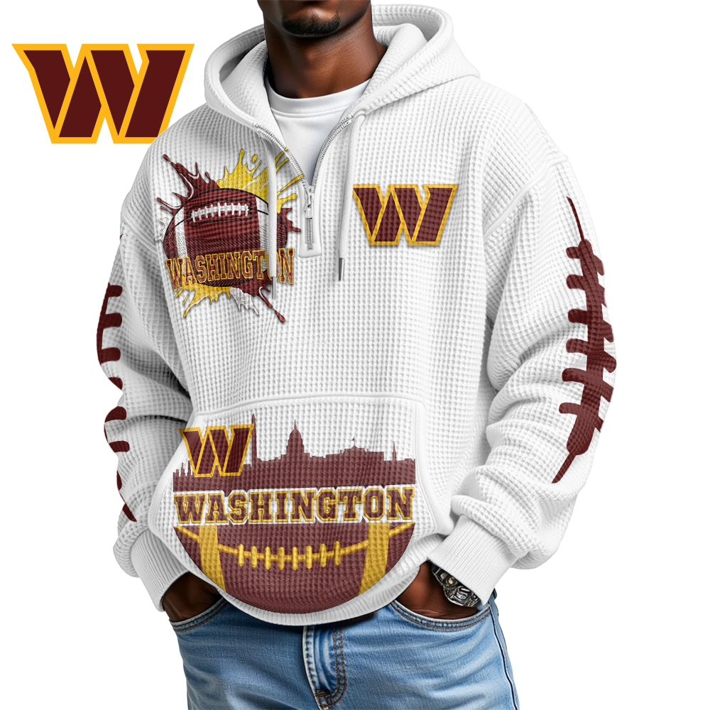 Washington Commanders | Premium NFL Waffle Zipper Long Sleeve Hooded Sweatshirt HI