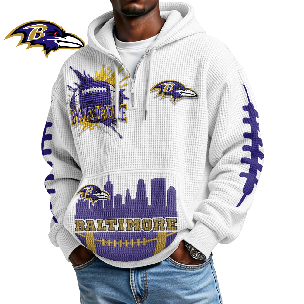 Baltimore Ravens | Premium NFL Waffle Zipper Long Sleeve Hooded Sweatshirt HI