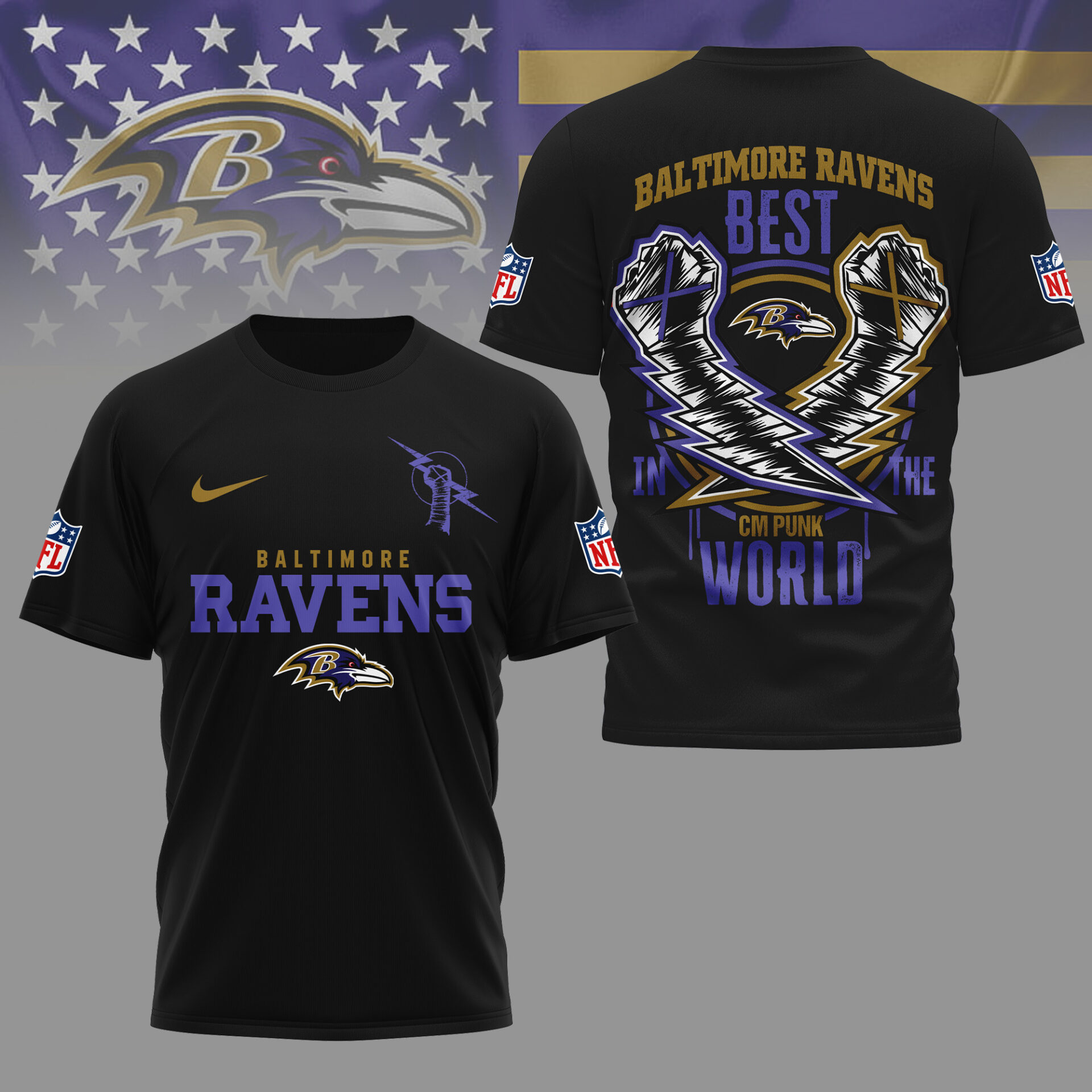 Baltimore Ravens | Premium NFL and CM Punk 3D Shirt