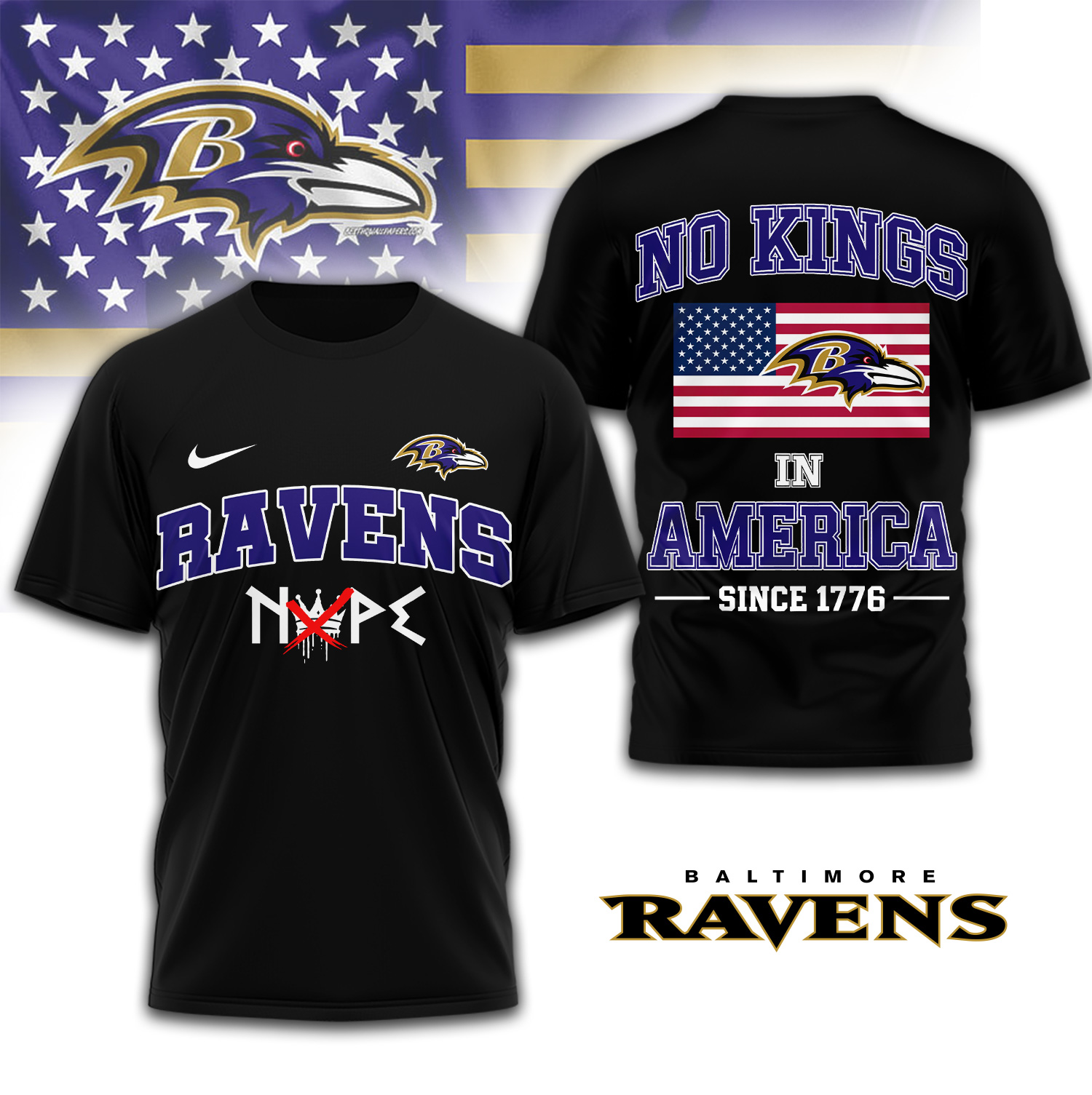 Baltimore Ravens | Premium NFL No Kings 3D Shirt TD