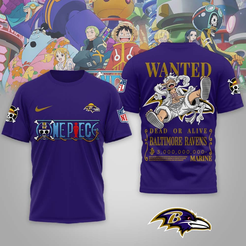 Baltimore Ravens | Premium NFL Wanted Monkey D Luffy 3D Shirt