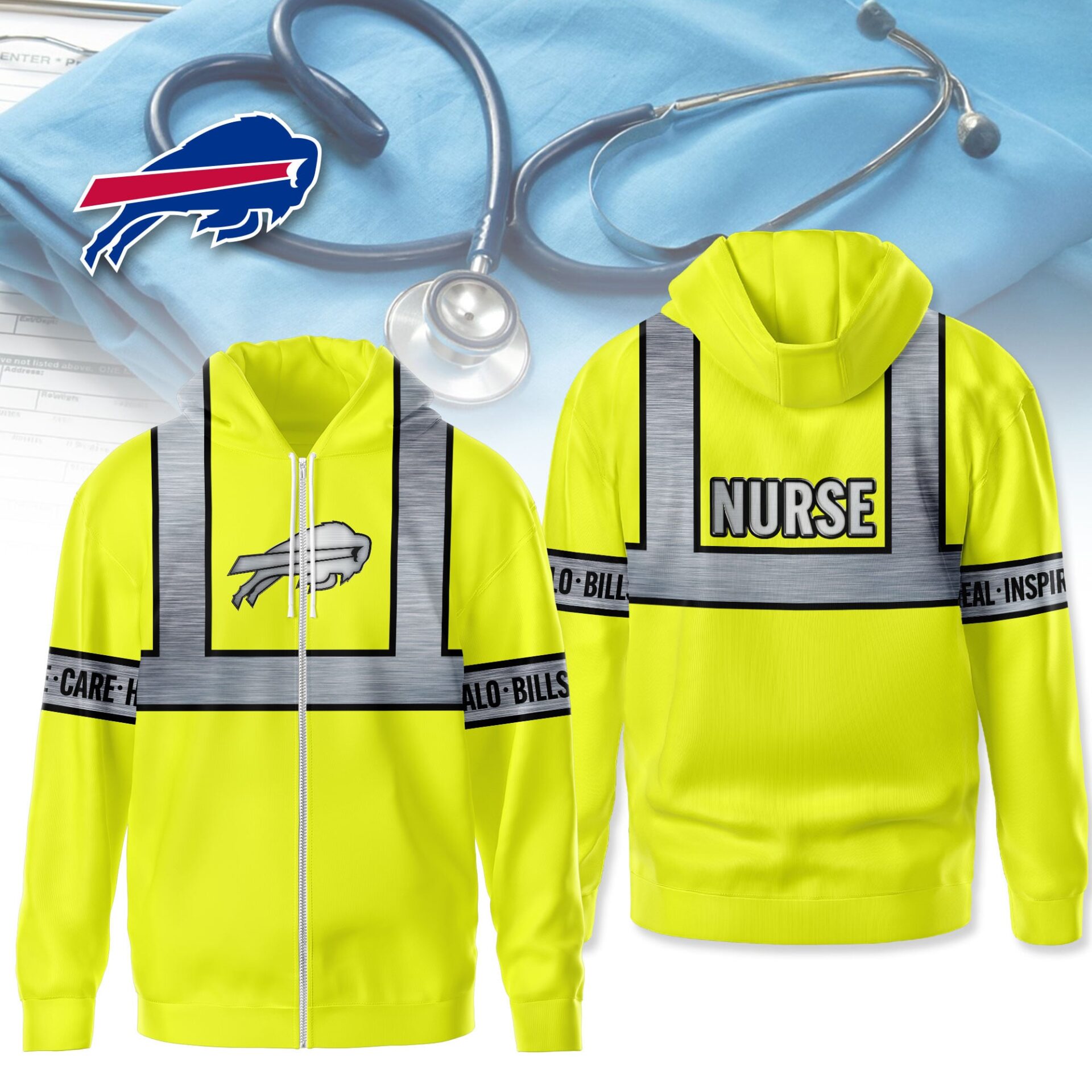 Buffalo Bills | Premium NFL Nurse Safrty Hi Vis Hoodie NY