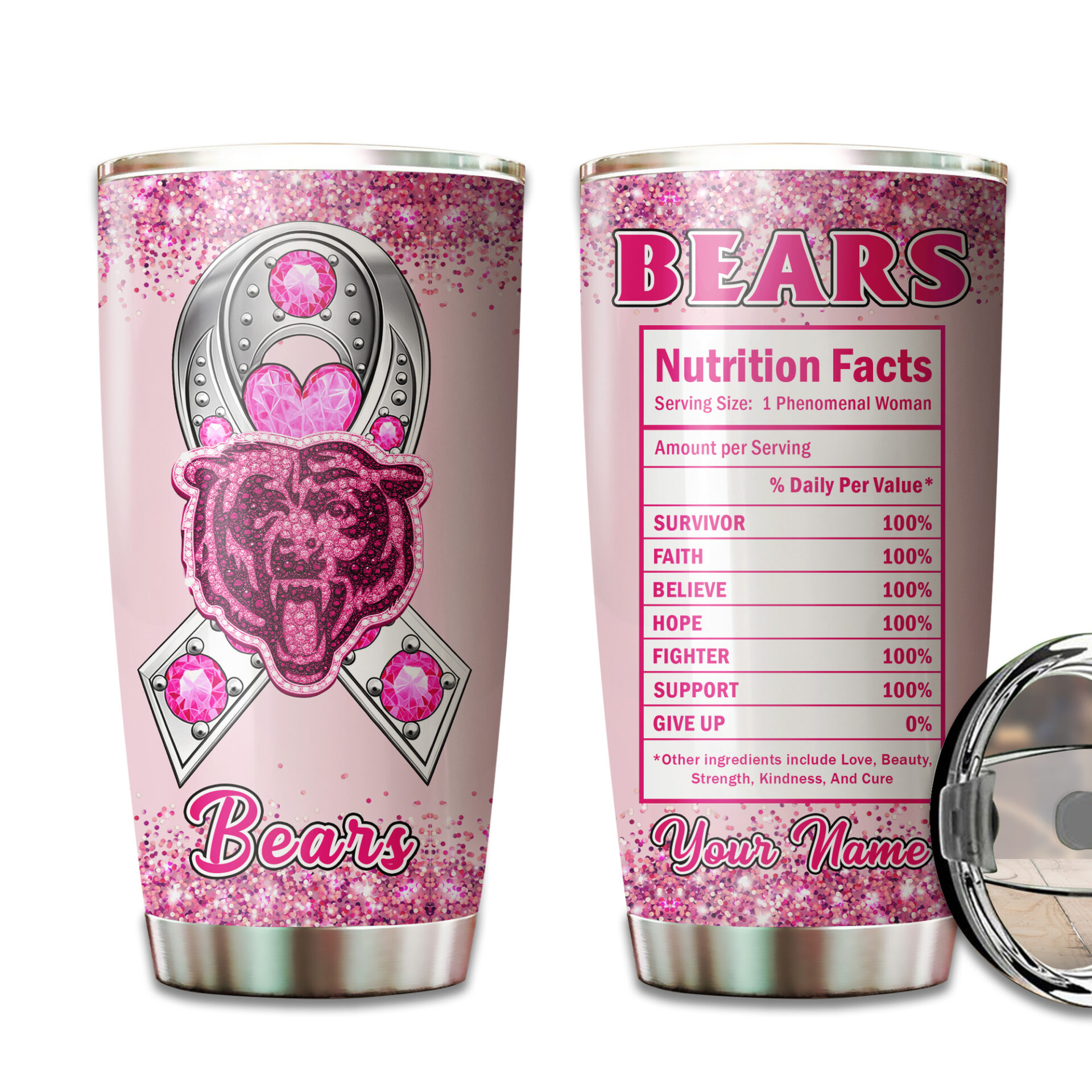 Categories: Chicago Bears, NFL, Premium NFL Breast Cancer Tumbler TD