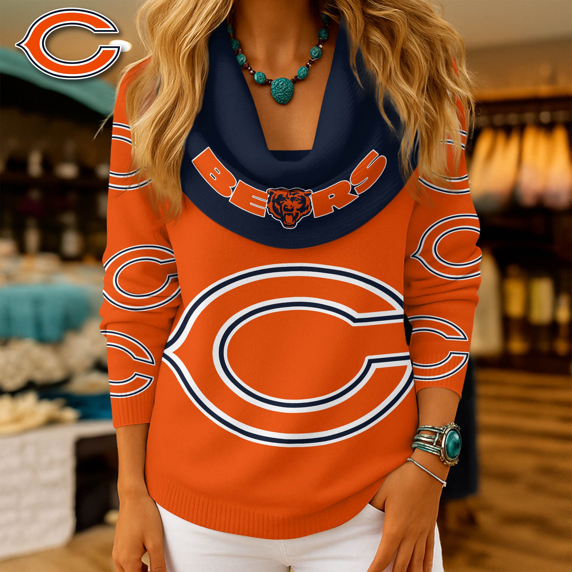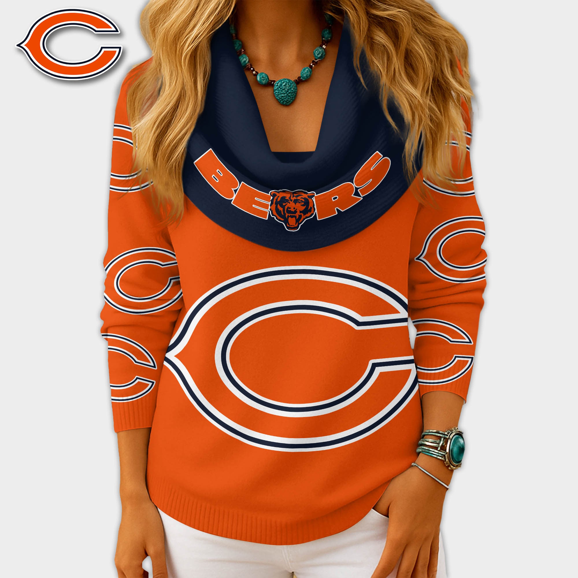 Chicago Bears | Premium NFL Fan Cowl Neck Sweater 3D Shirt NY