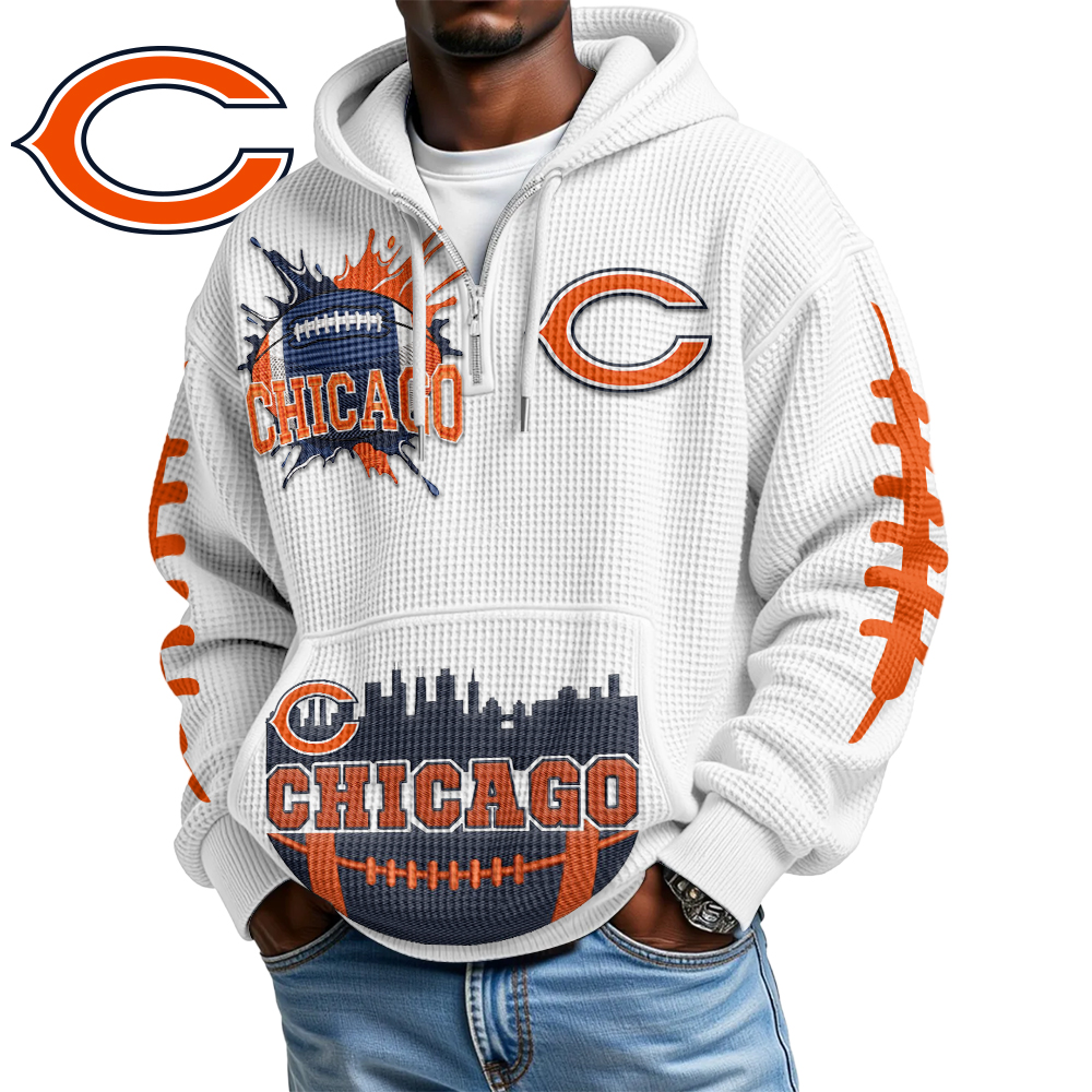 Chicago Bears | Premium NFL Waffle Zipper Long Sleeve Hooded Sweatshirt HI
