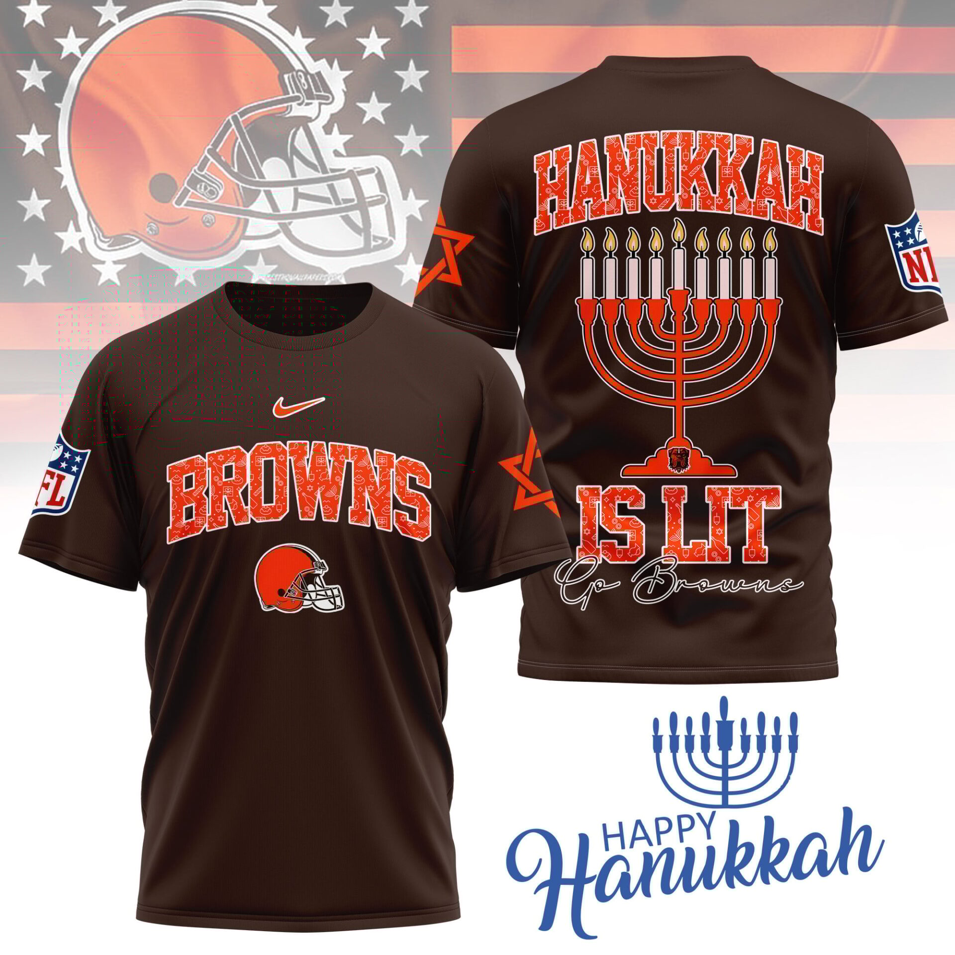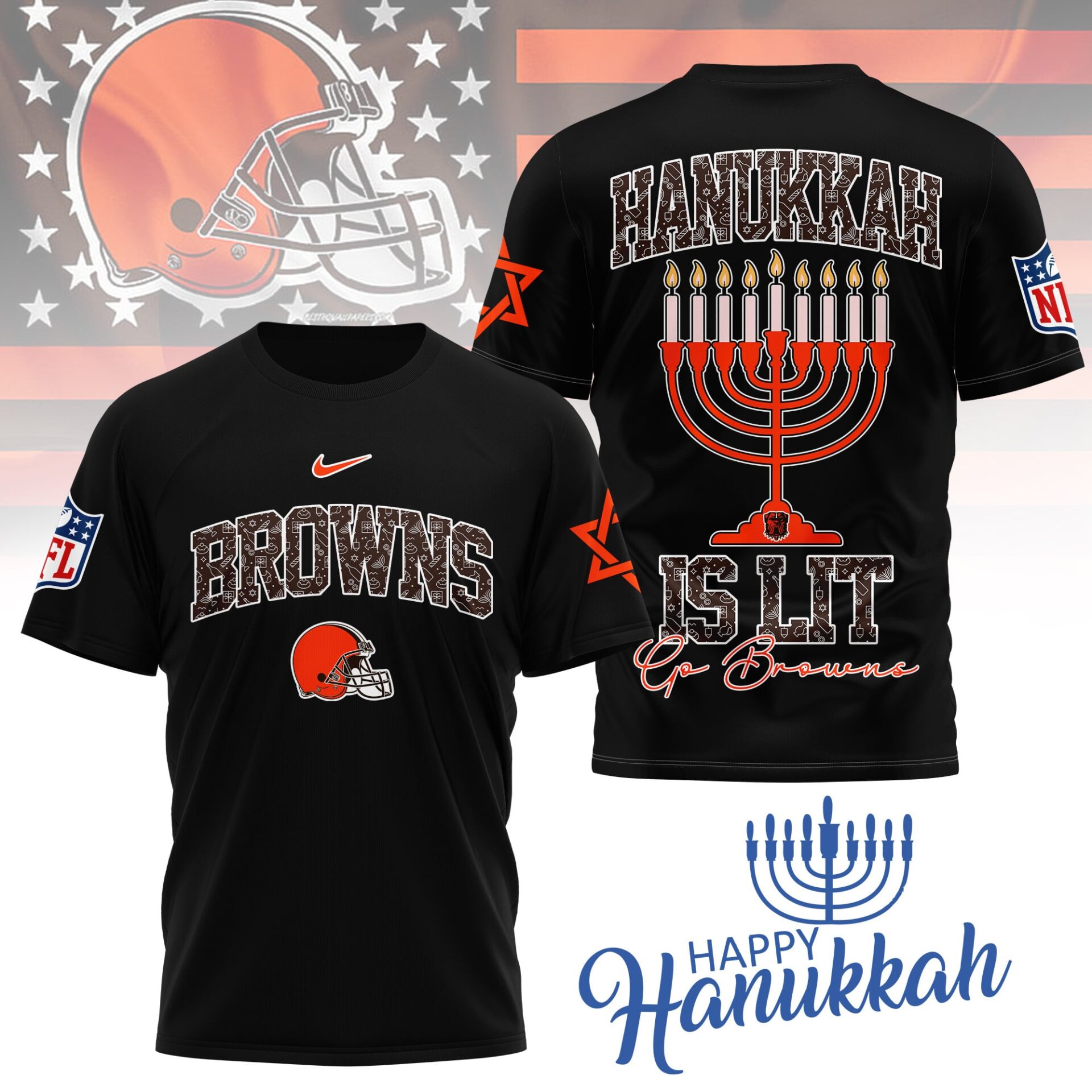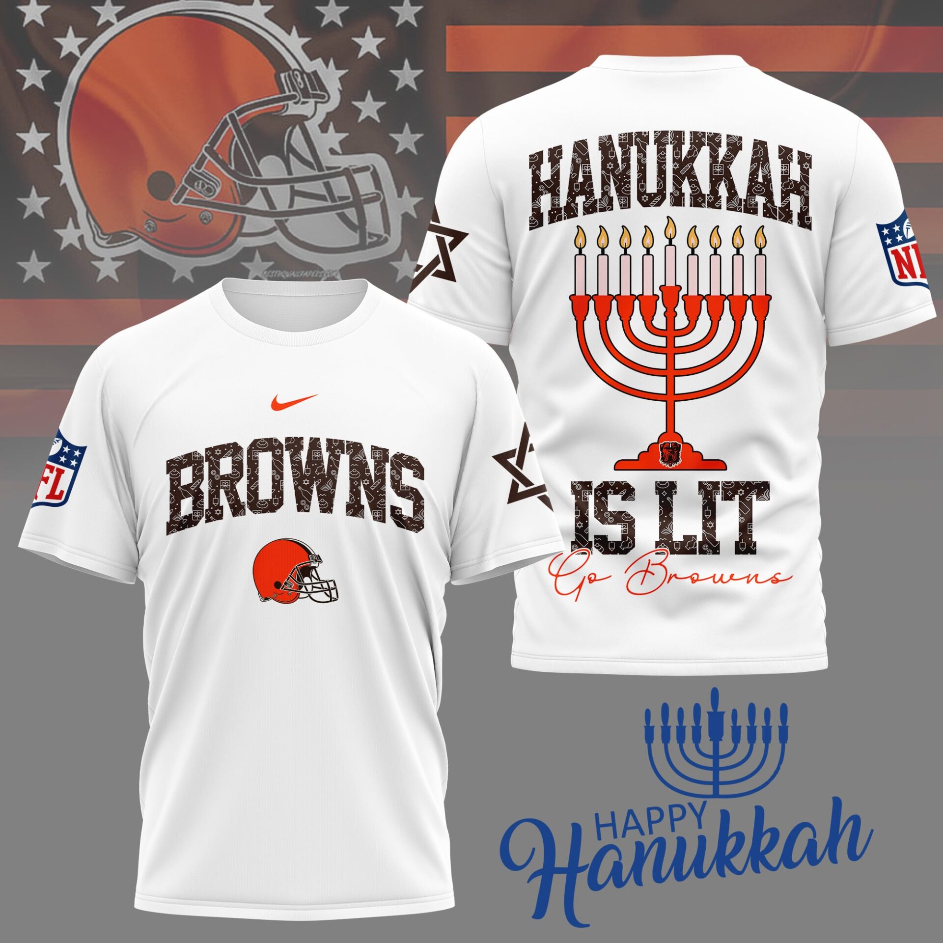 Cleveland Browns | Premium NFL Happy Hanukkah 3D Shirt NY