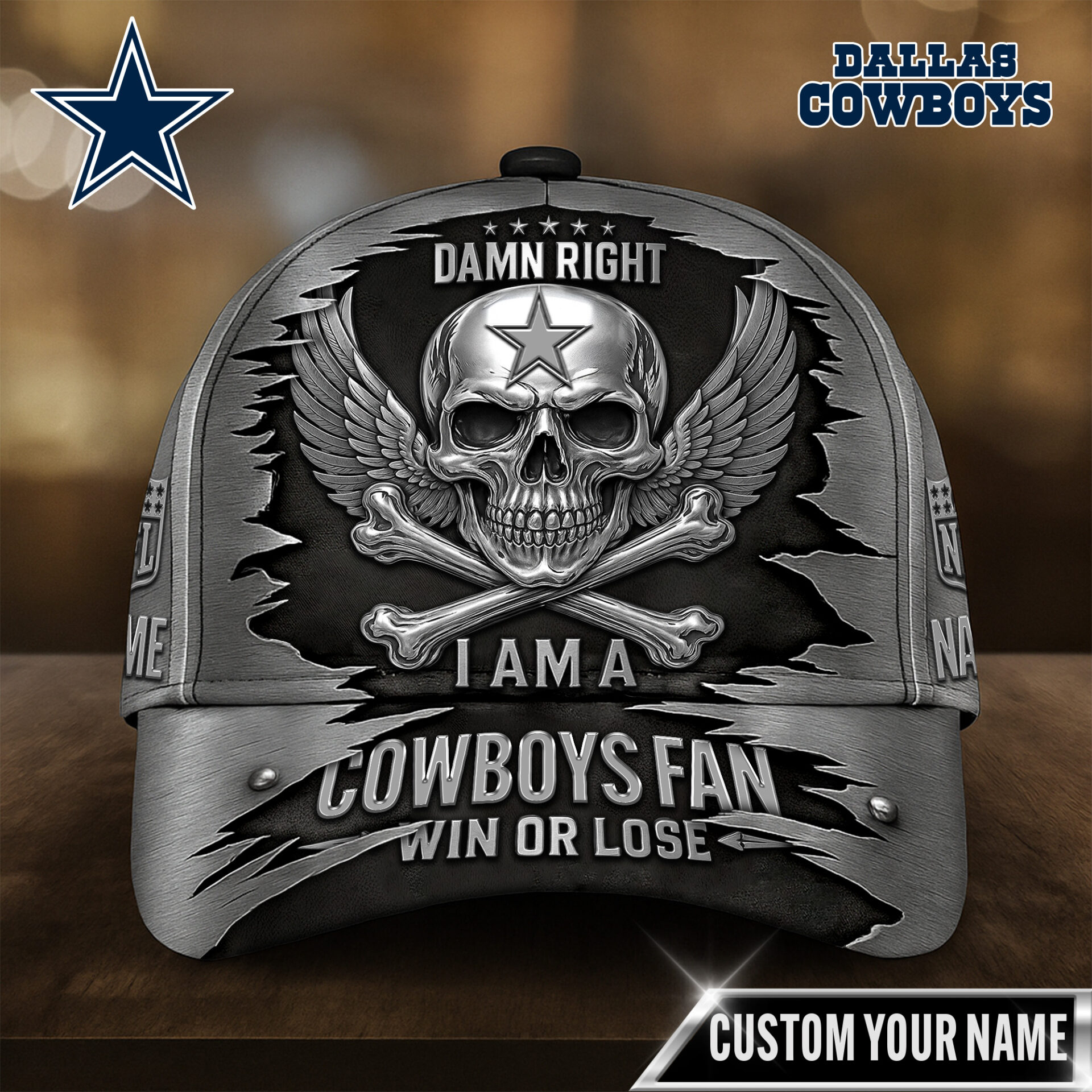 Categories: Dallas Cowboys, NFL, Premium NFL Skull Wings Fan Pride Cap