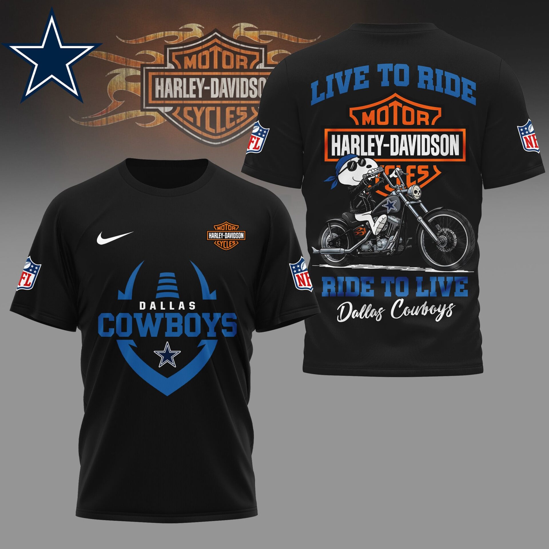 Dallas Cowboys | Premium NFL Snoopy Harley Davidson 3D Shirt NY