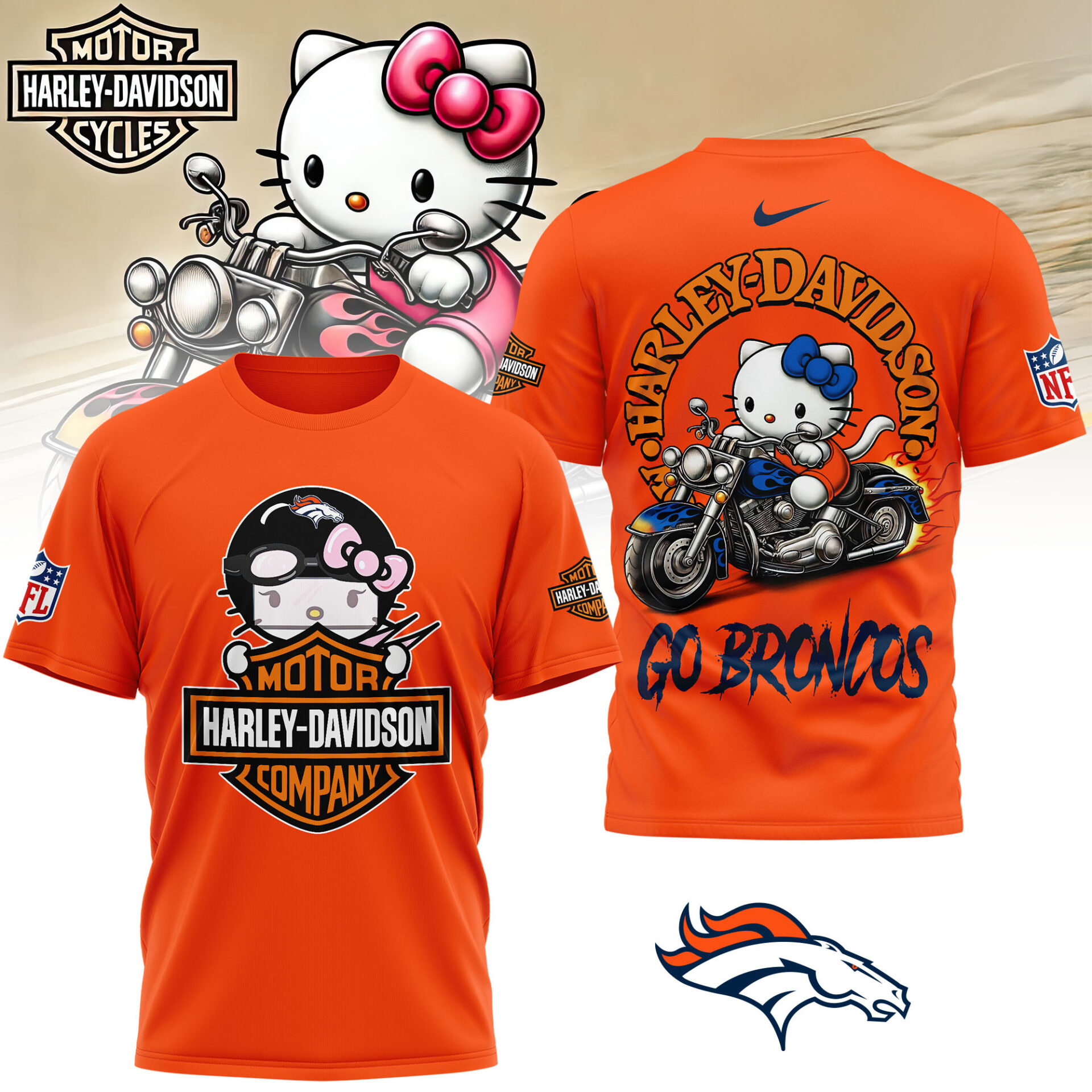 Denver Broncos | Premium NFL Hello Kitty Harley Davidson 3D Shirt NY