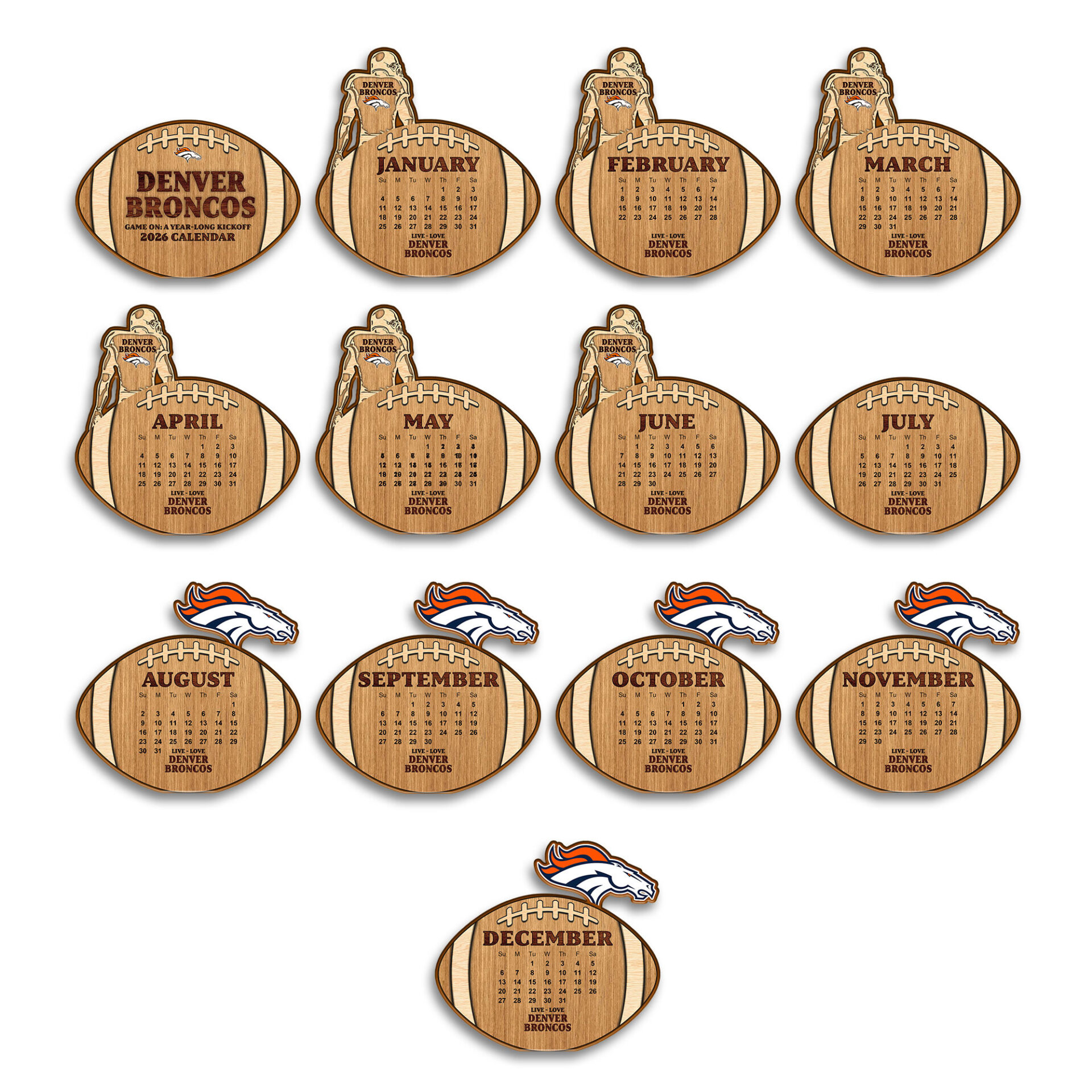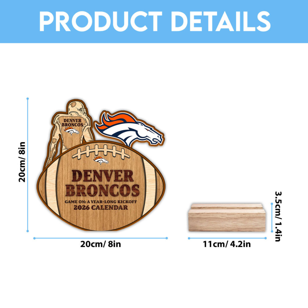 Denver Broncos | Premium NFL Rugby Ball Shaped 2026 Calendar