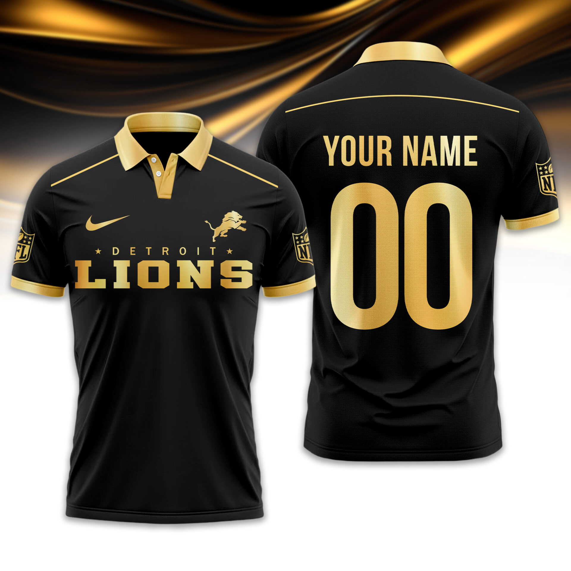 Detroit Lions | Premium NFL Black And Gold Custom Polo TD