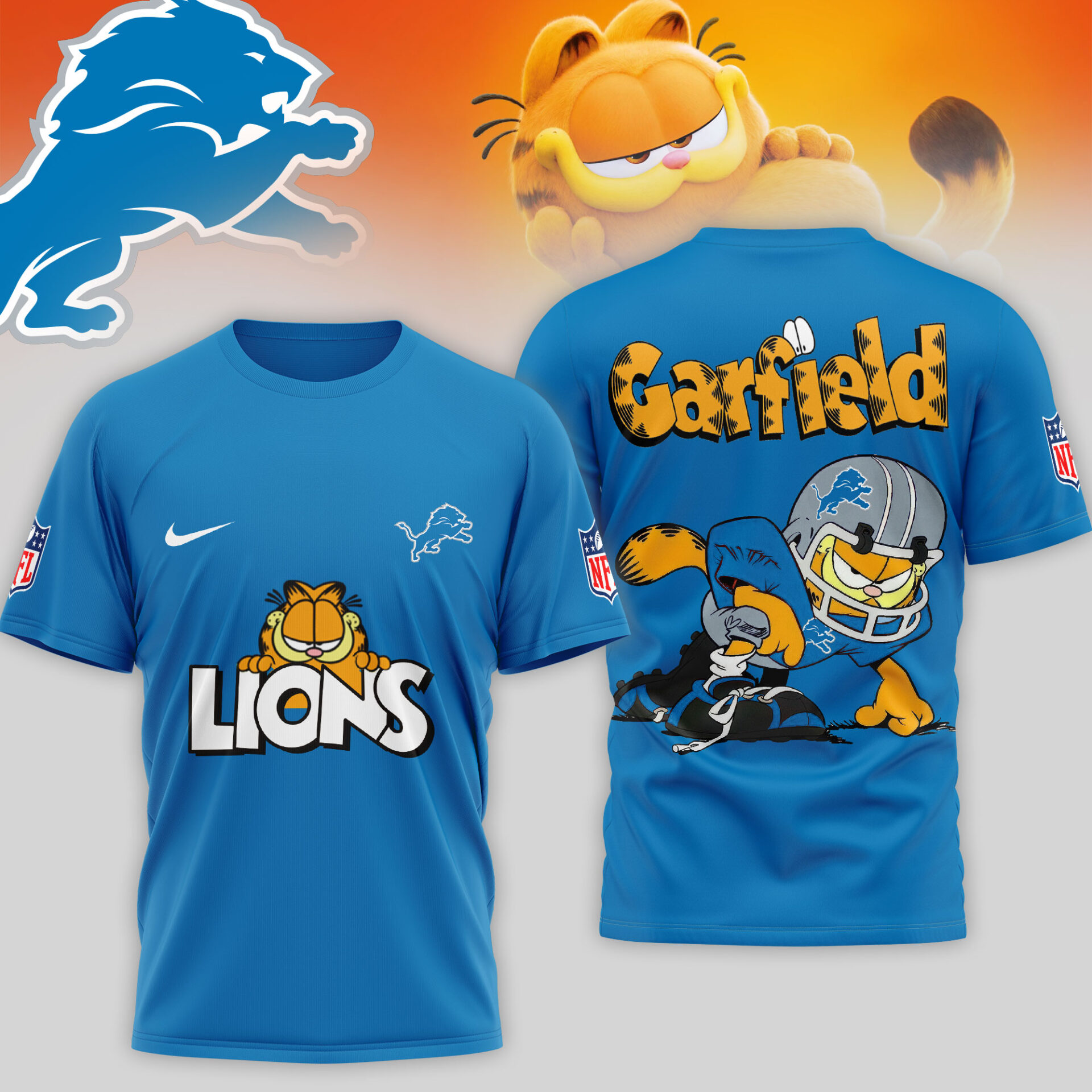Detroit Lions | Premium NFL Garfield Cat 3D Shirt TD