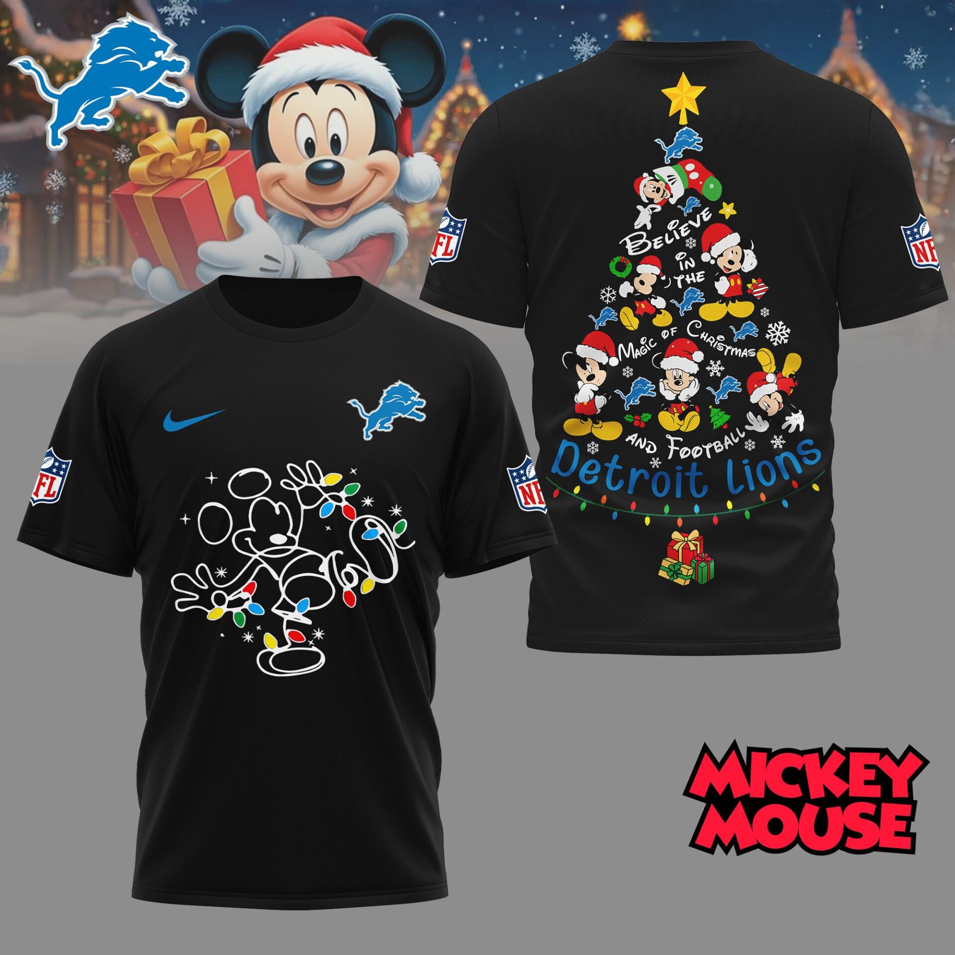 Detroit Lions | Premium NFL Mickey Mouse Christmas 3D Shirt NY
