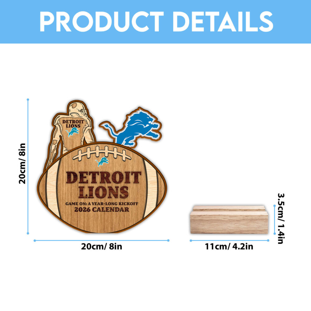 Detroit Lions | Premium NFL Rugby Ball Shaped 2026 Calendar