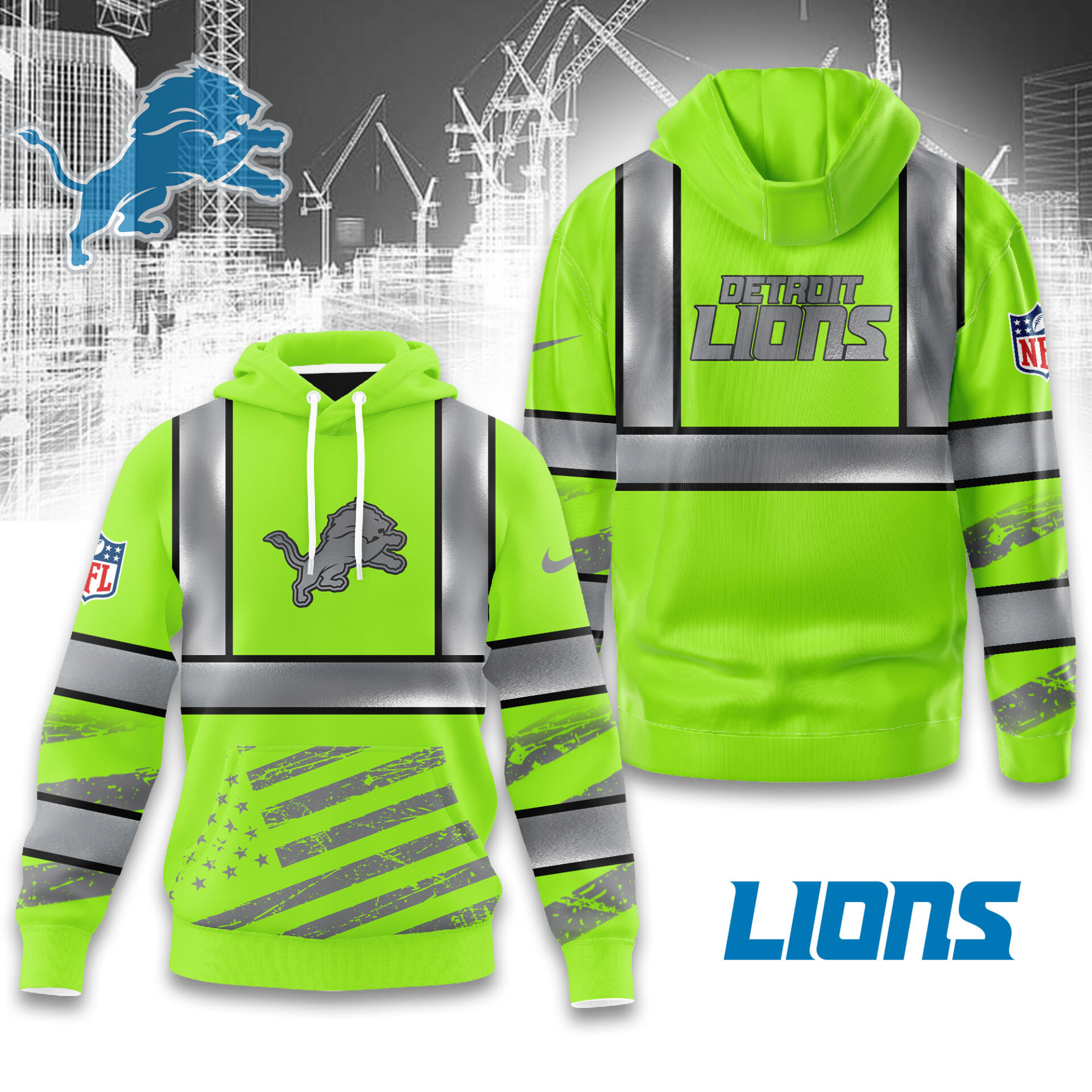 Detroit Lions | Premium NFL Safety Hi-Vis Hoodie MM