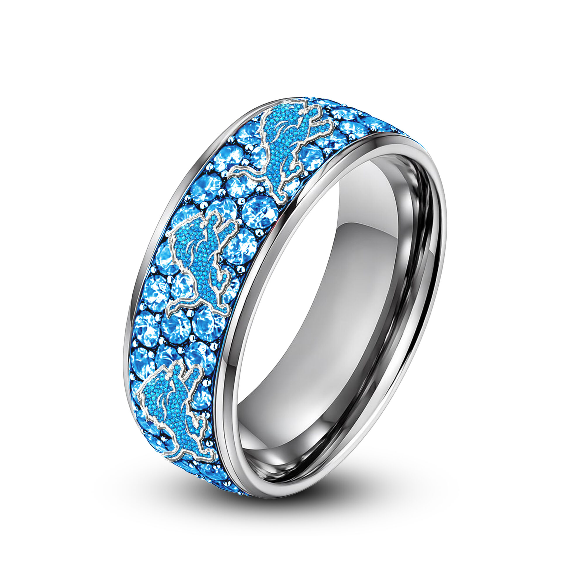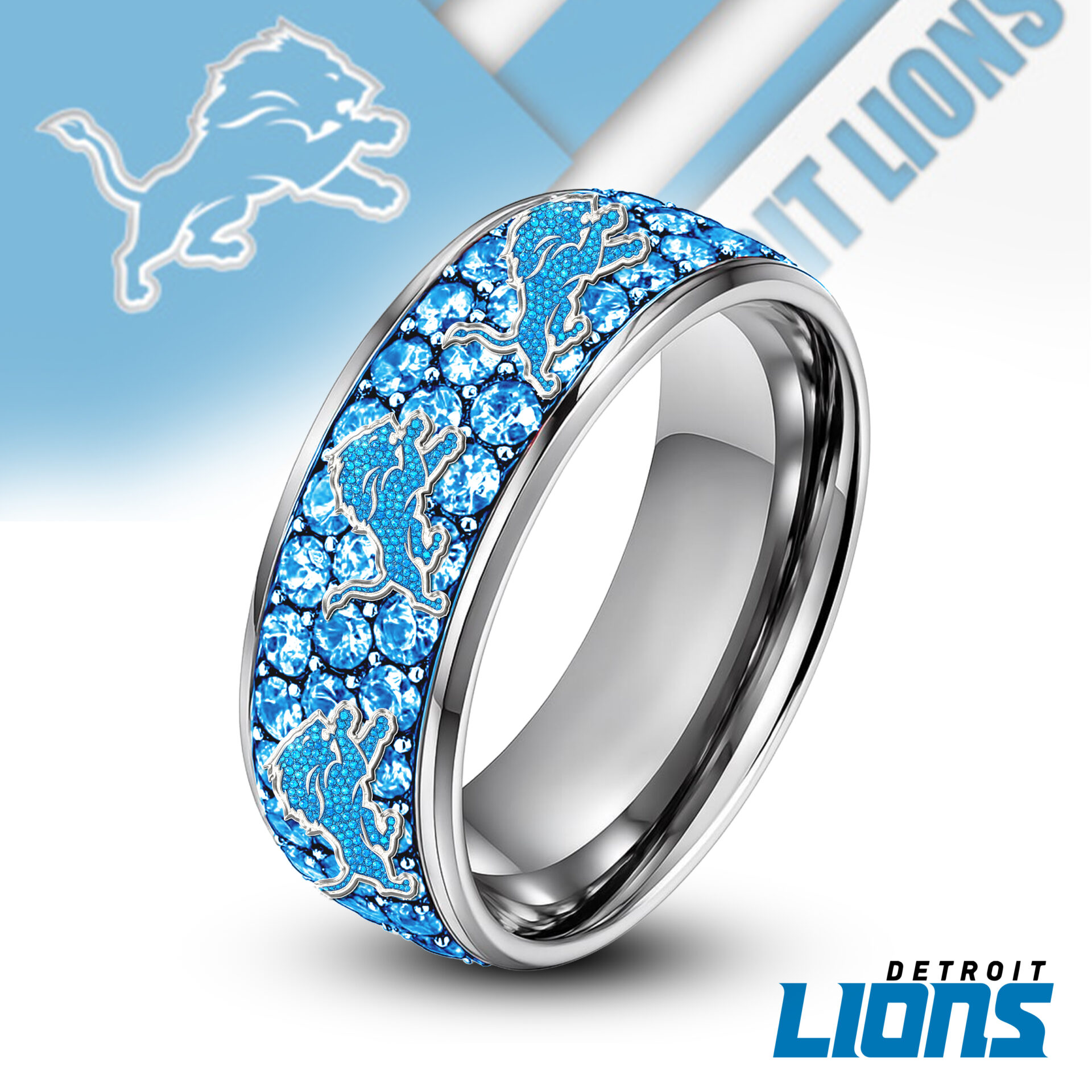 Detroit Lions | Silver Tungsten Bling Rhinestone Ring TD