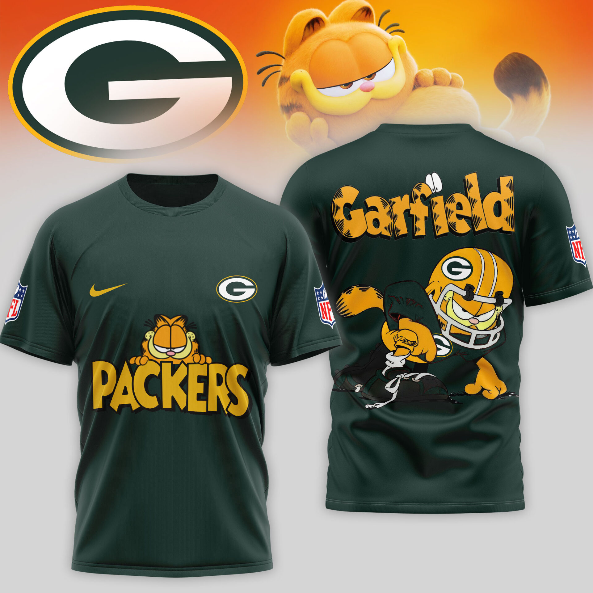 Green Bay Packers | Premium NFL Garfield Cat 3D Shirt TD