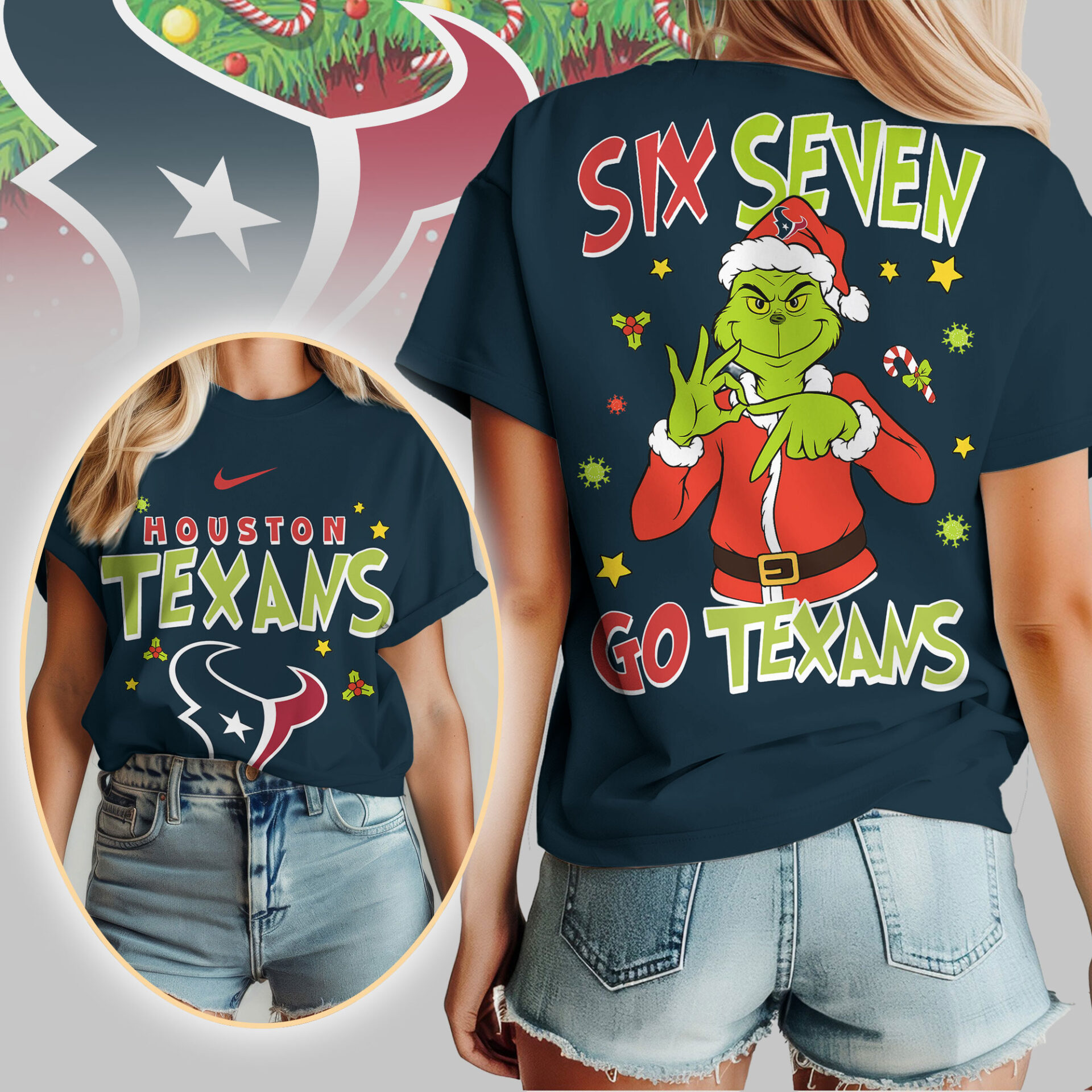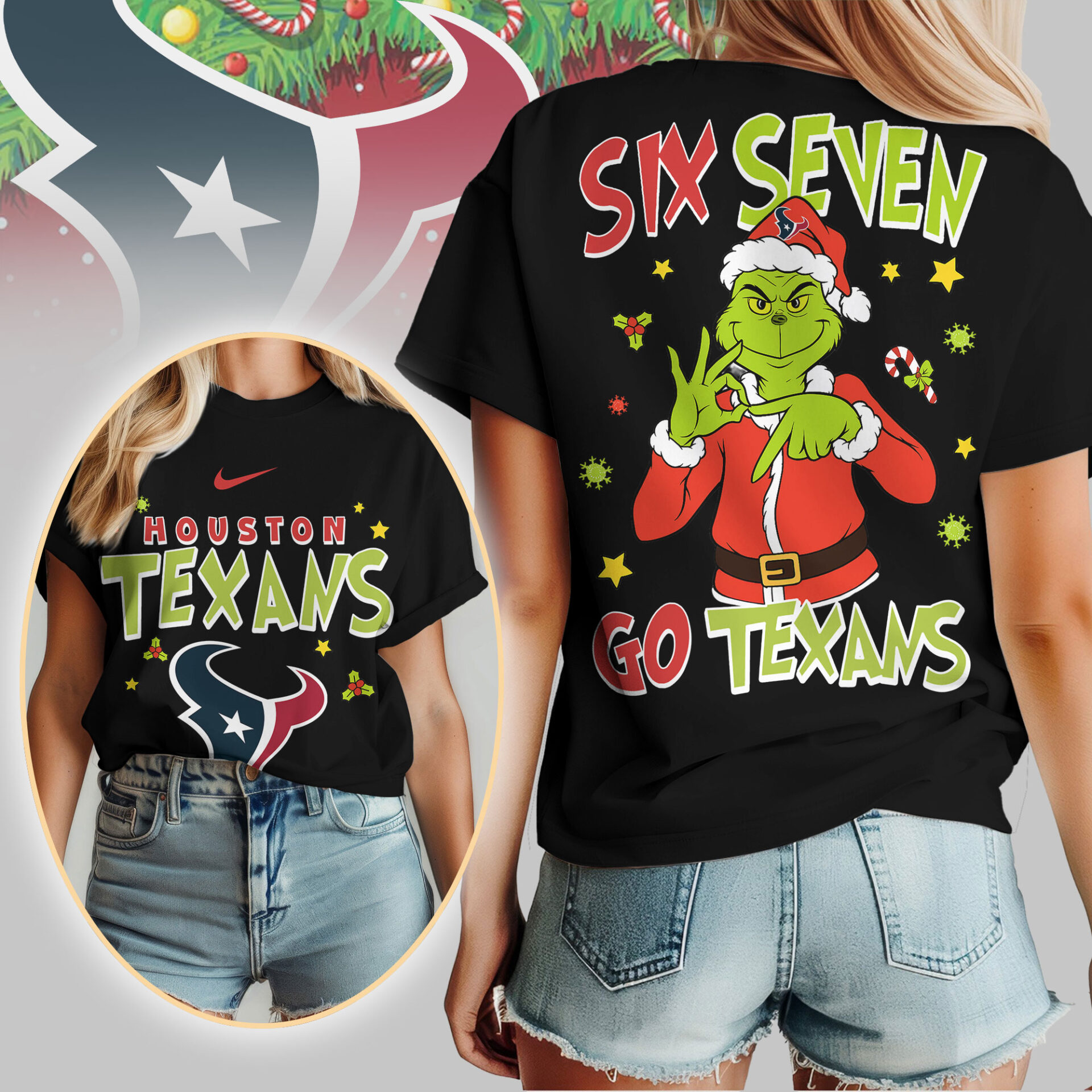 Houston Texans | Premium NFL Grinch Six Seven Women Shirt TD