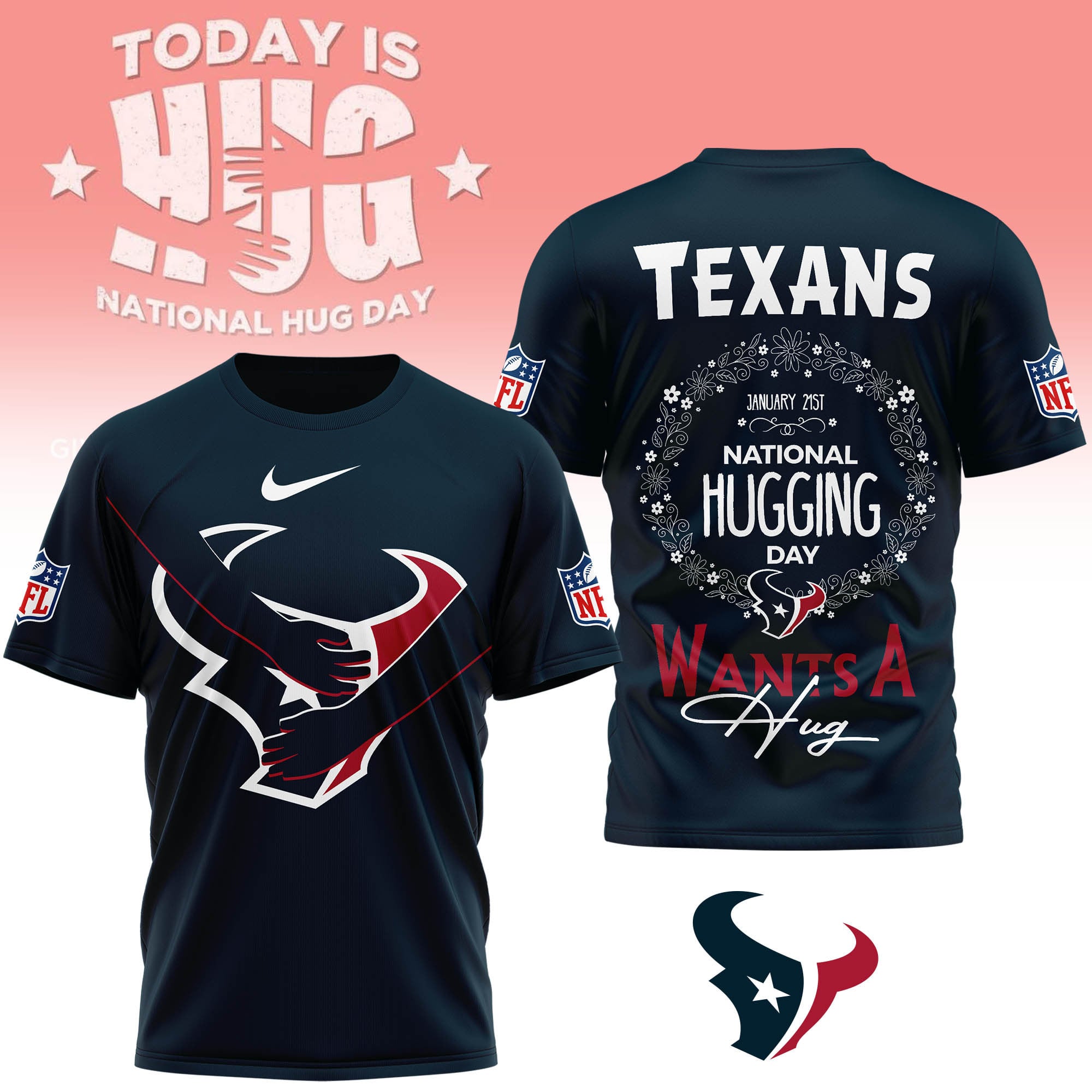 Houston Texans | Premium NFL National Hugging Day 3D Shirt