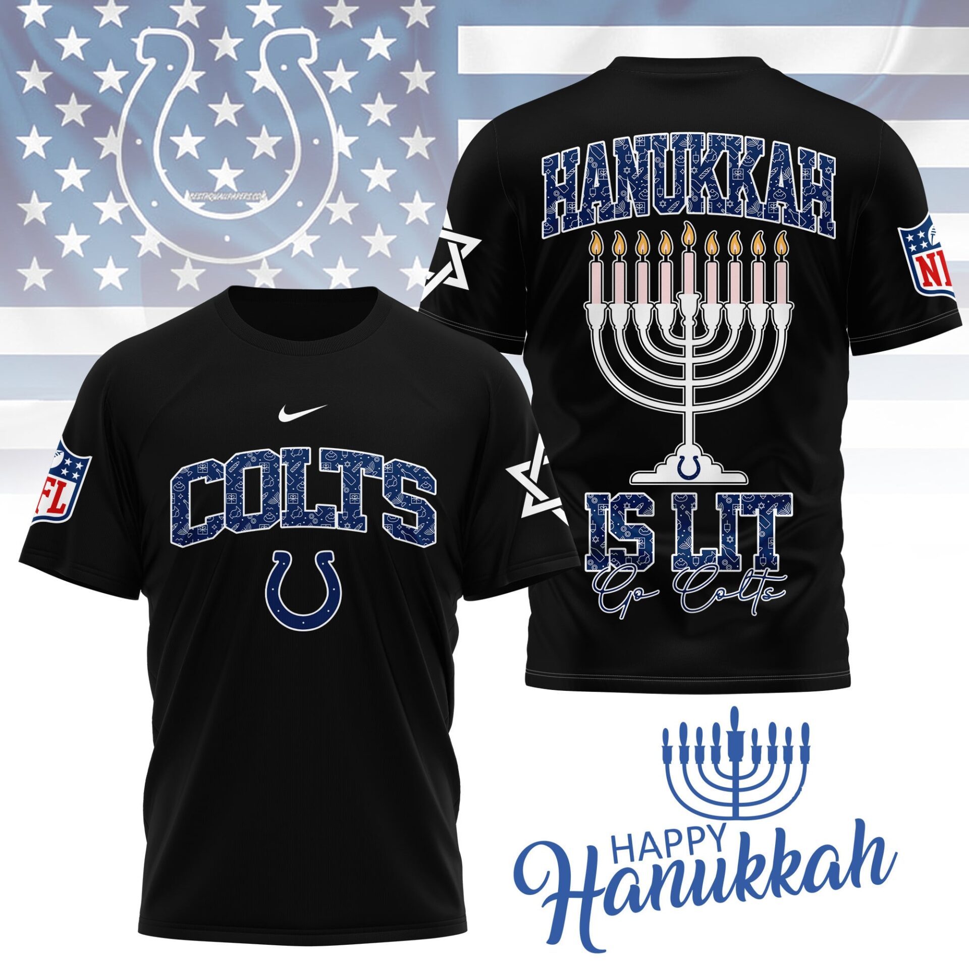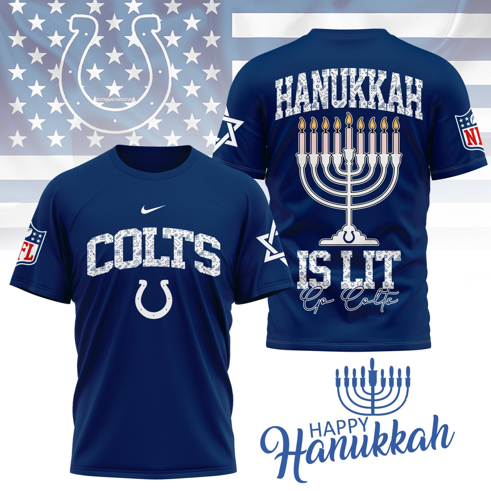 Indianapolis Colts | Premium NFL Happy Hanukkah 3D Shirt NY