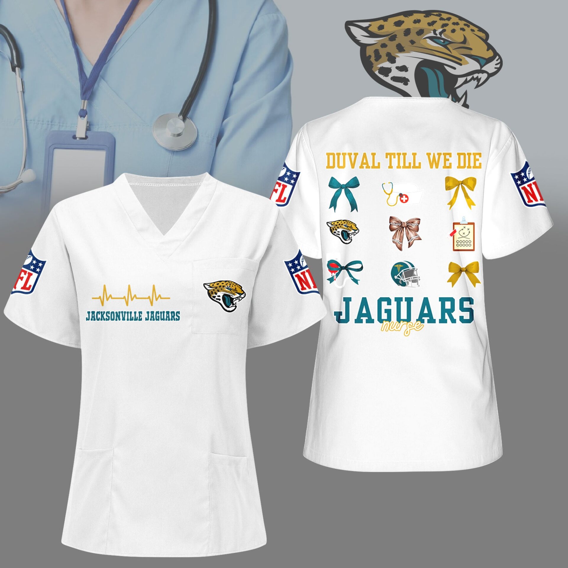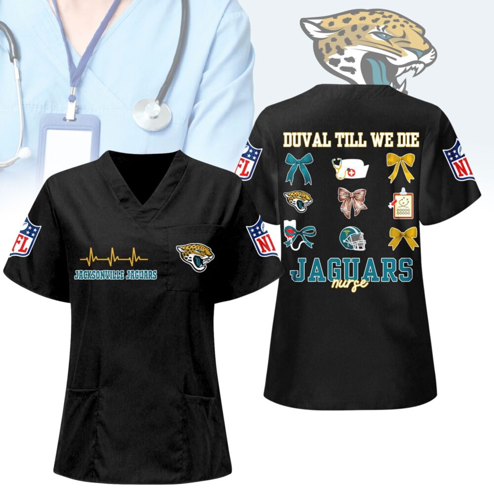 Jacksonville Jaguars | Premium NFL Nurse Hearts And Bows Scrub Shirt NY