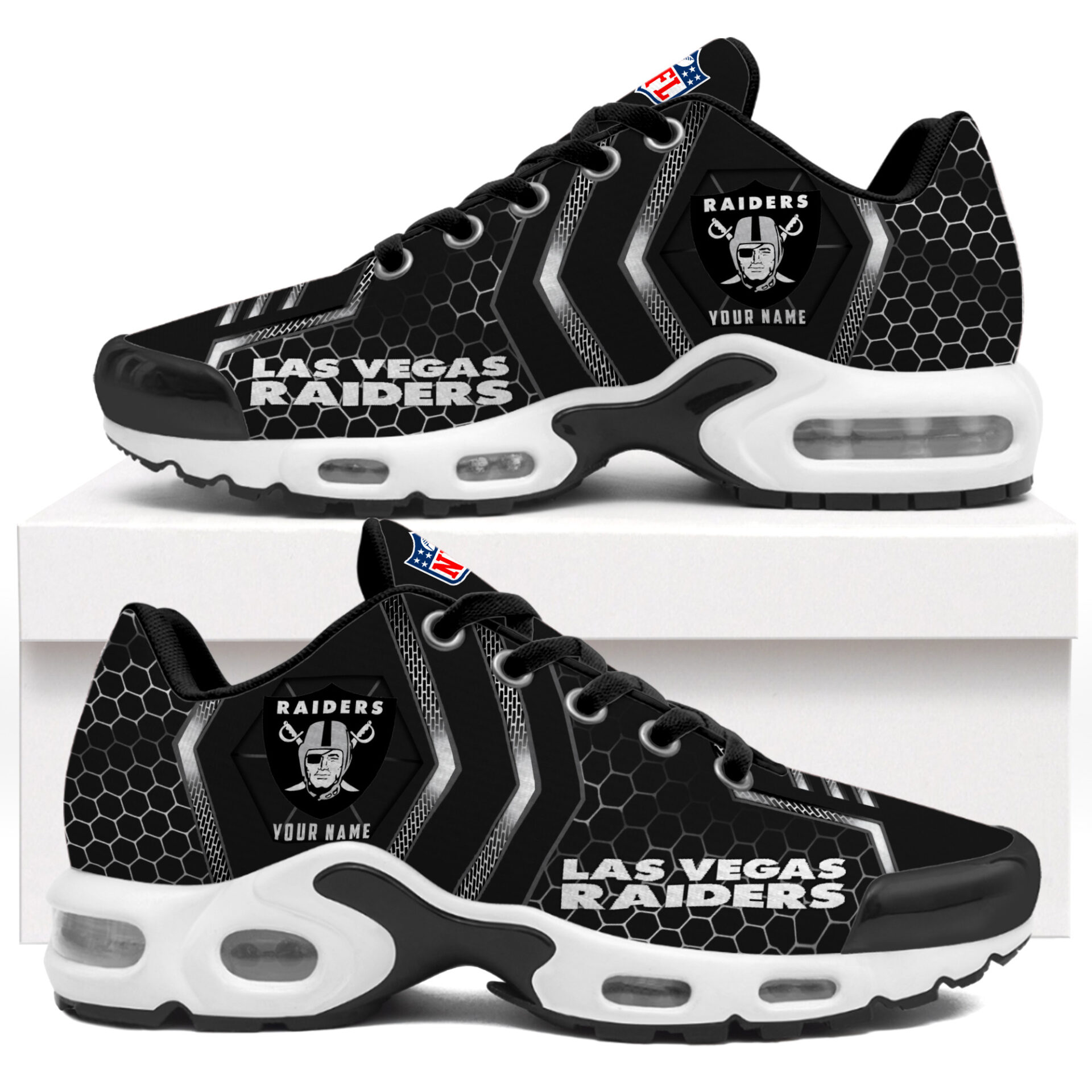 Categories: Las Vegas Raiders, NFL, Premium NFL Personalized Air Max Shoes Exclusive Edition