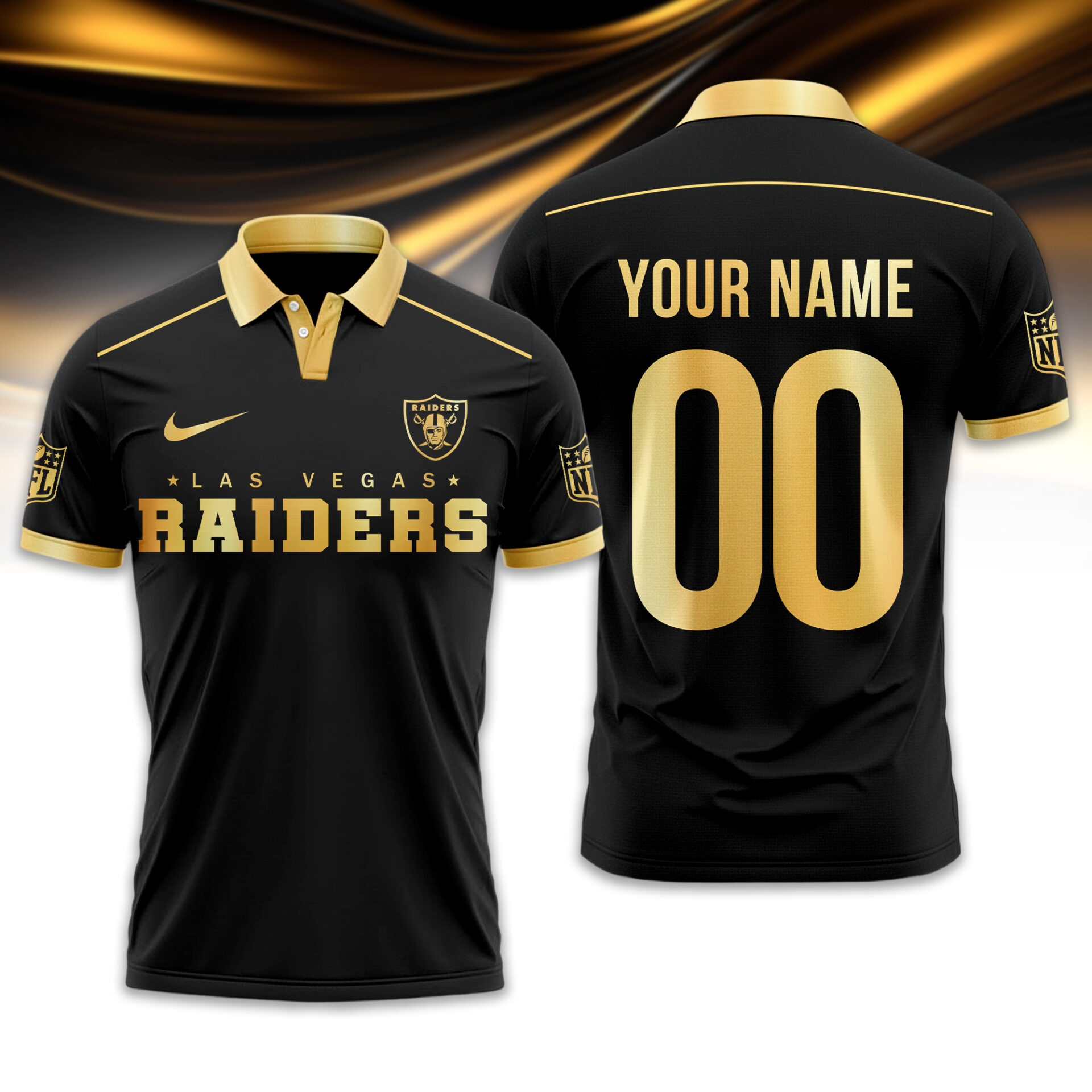 Las Vegas Raiders | Premium NFL Black And Gold Custom Polo TD