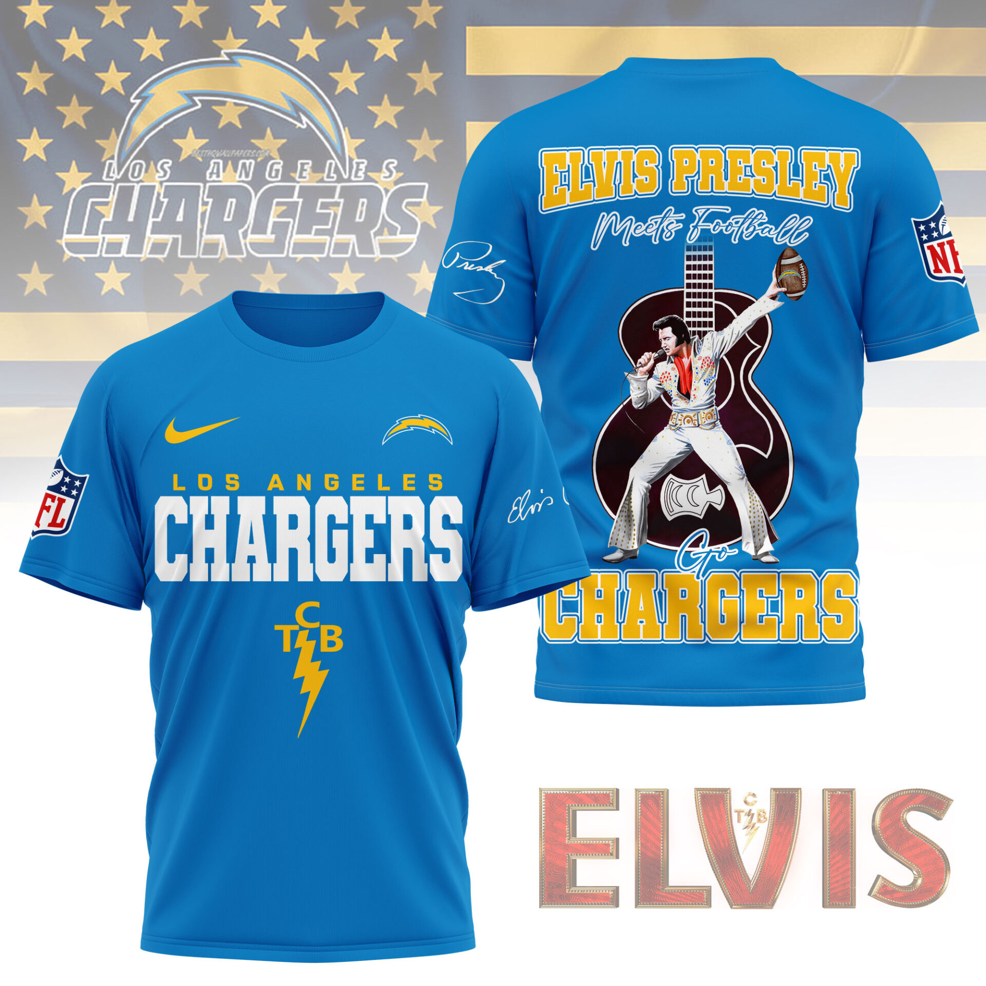 Los Angeles Chargers | Premium NFL Elvis Presley Fan 3D Shirt NY