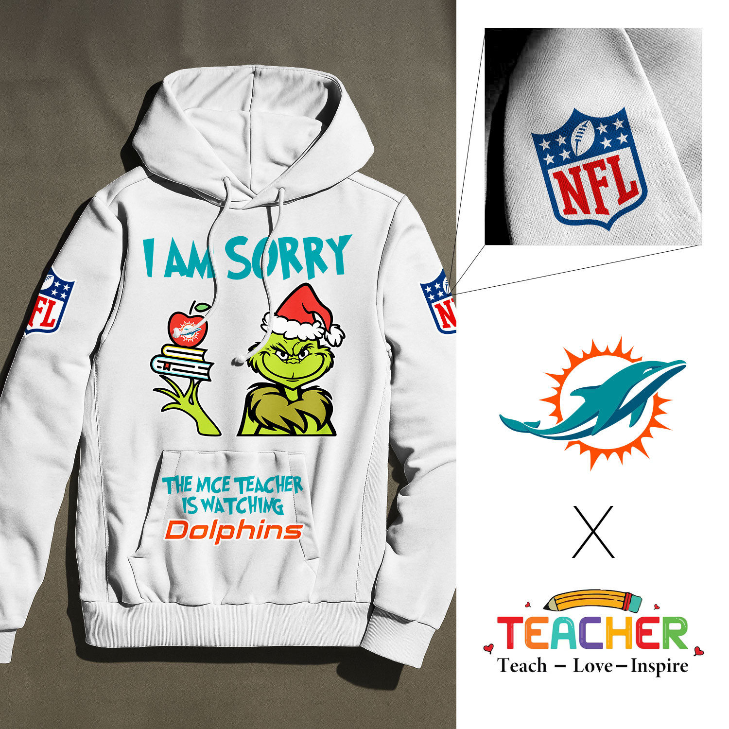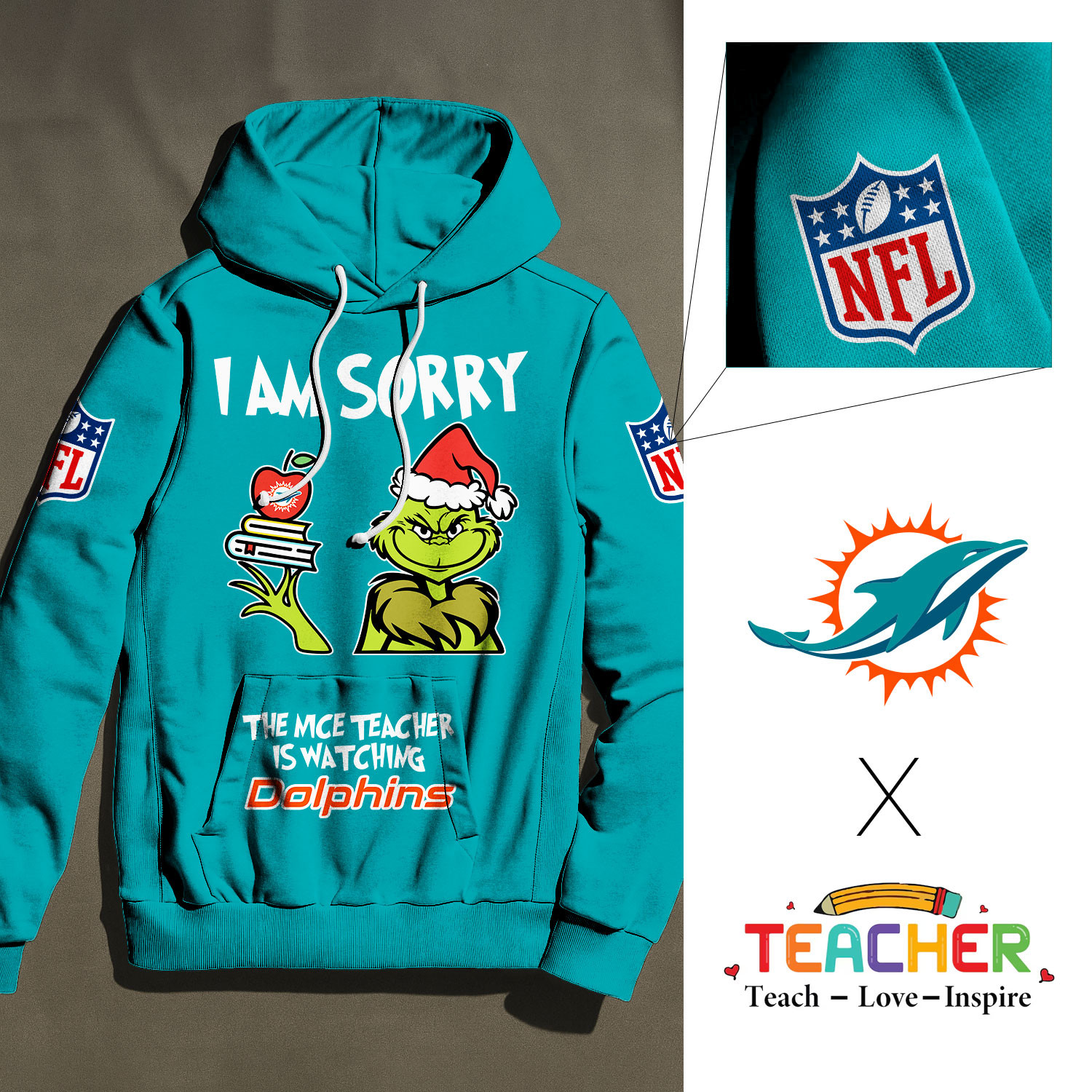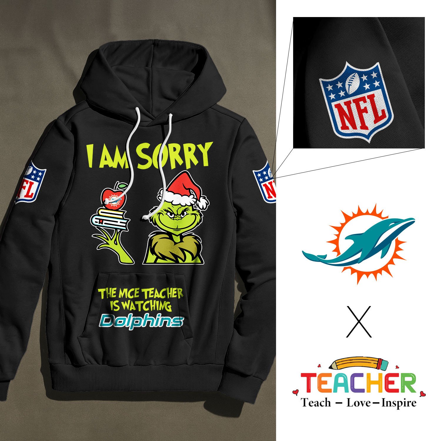 Miami Dolphins | Premium NFL Grinch Teacher Appreciation Hoodie NY
