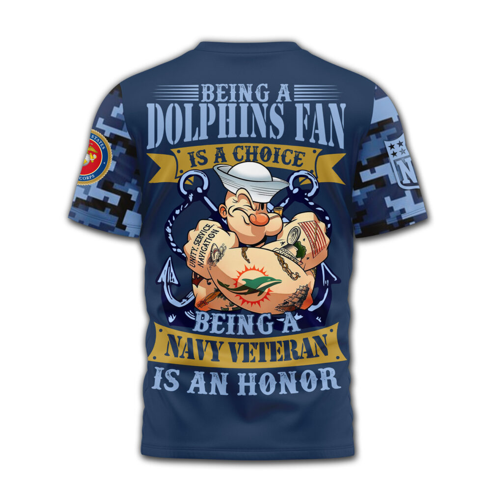 Miami Dolphins | Premium NFL Navy Veteran Popeye 3D Shirt