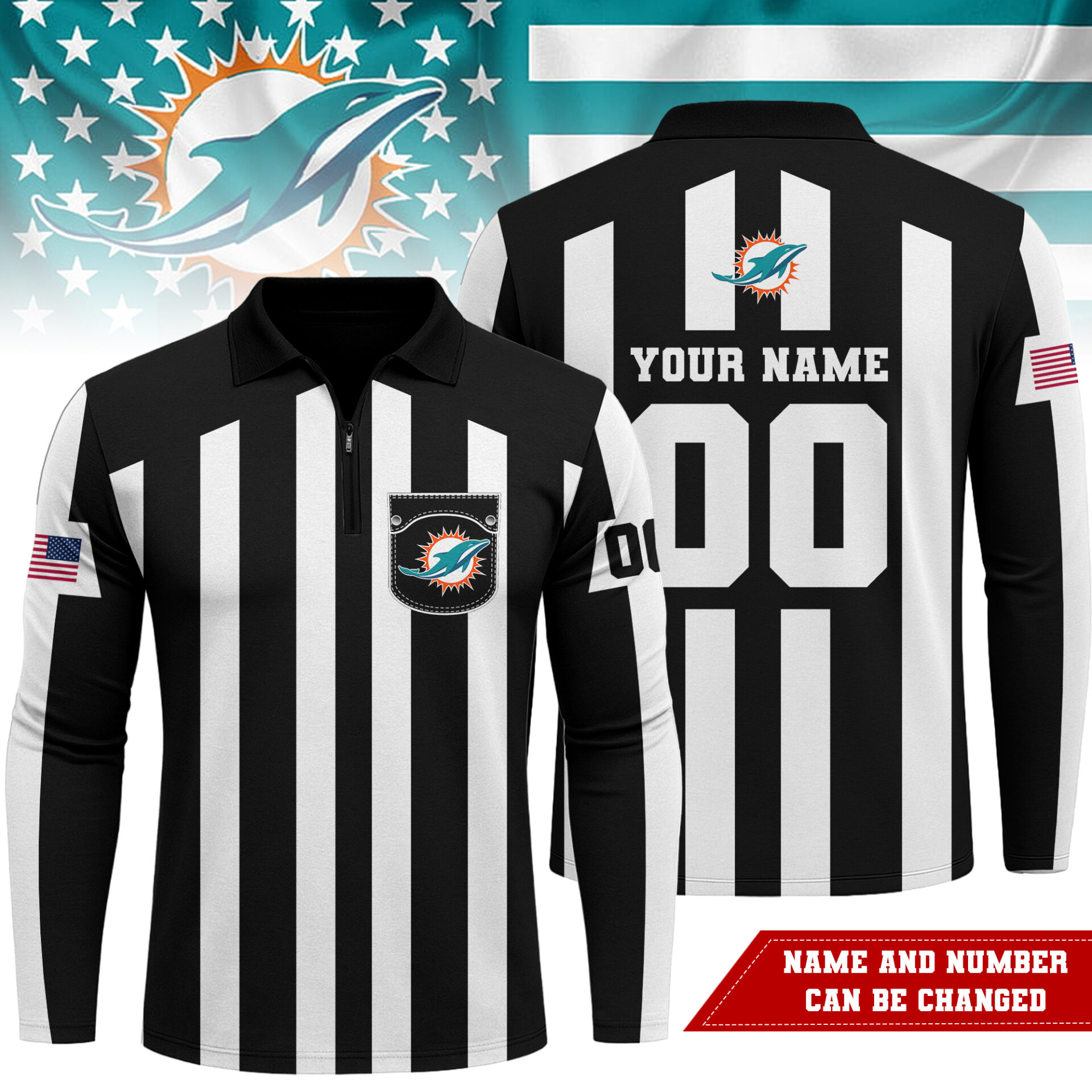 Miami Dolphins | Premium NFL Referees 3D Zipper Long Sleeve Polo Shirt