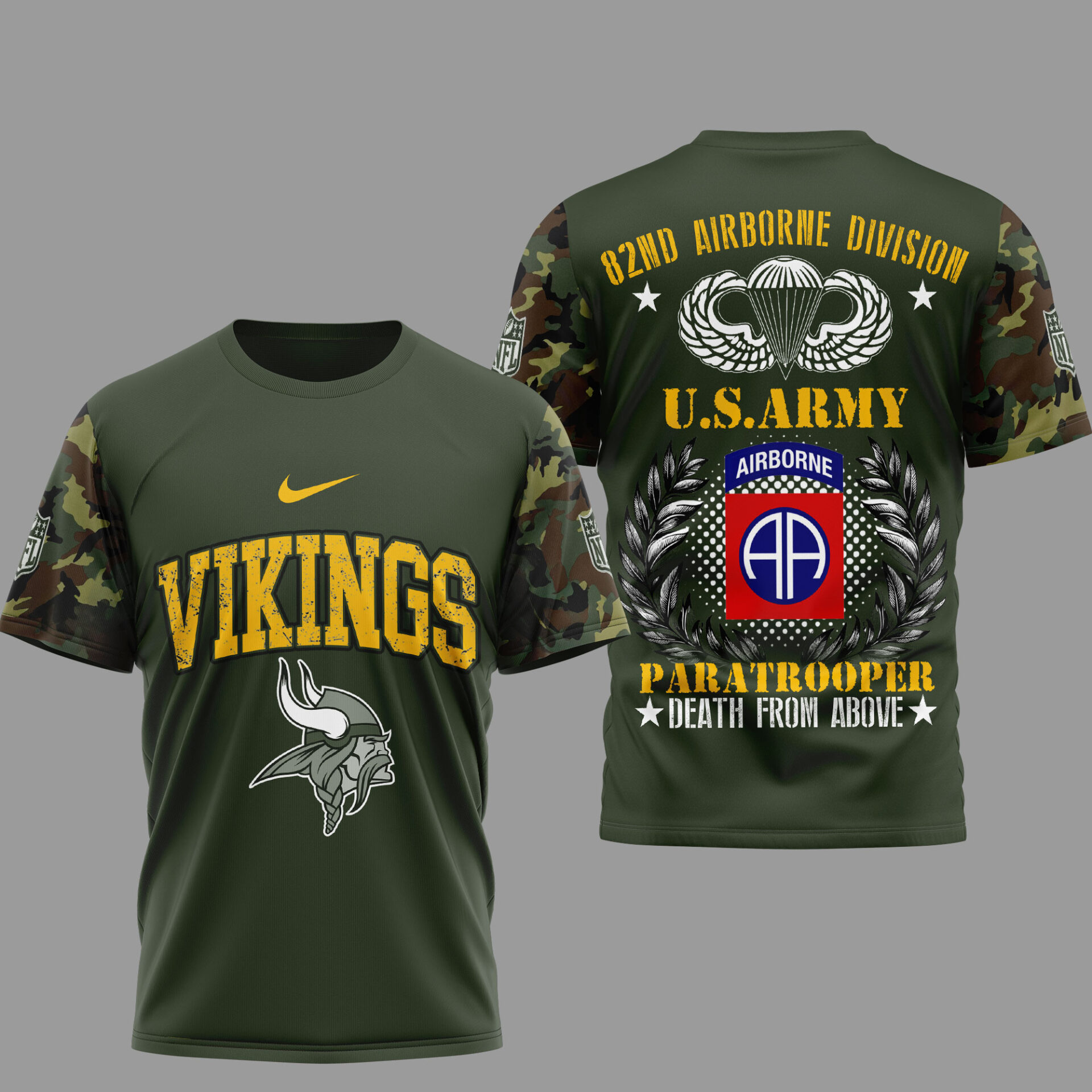 Minnesota Vikings | Premium NFL 82nd Airborne Division 3D Shirt TD