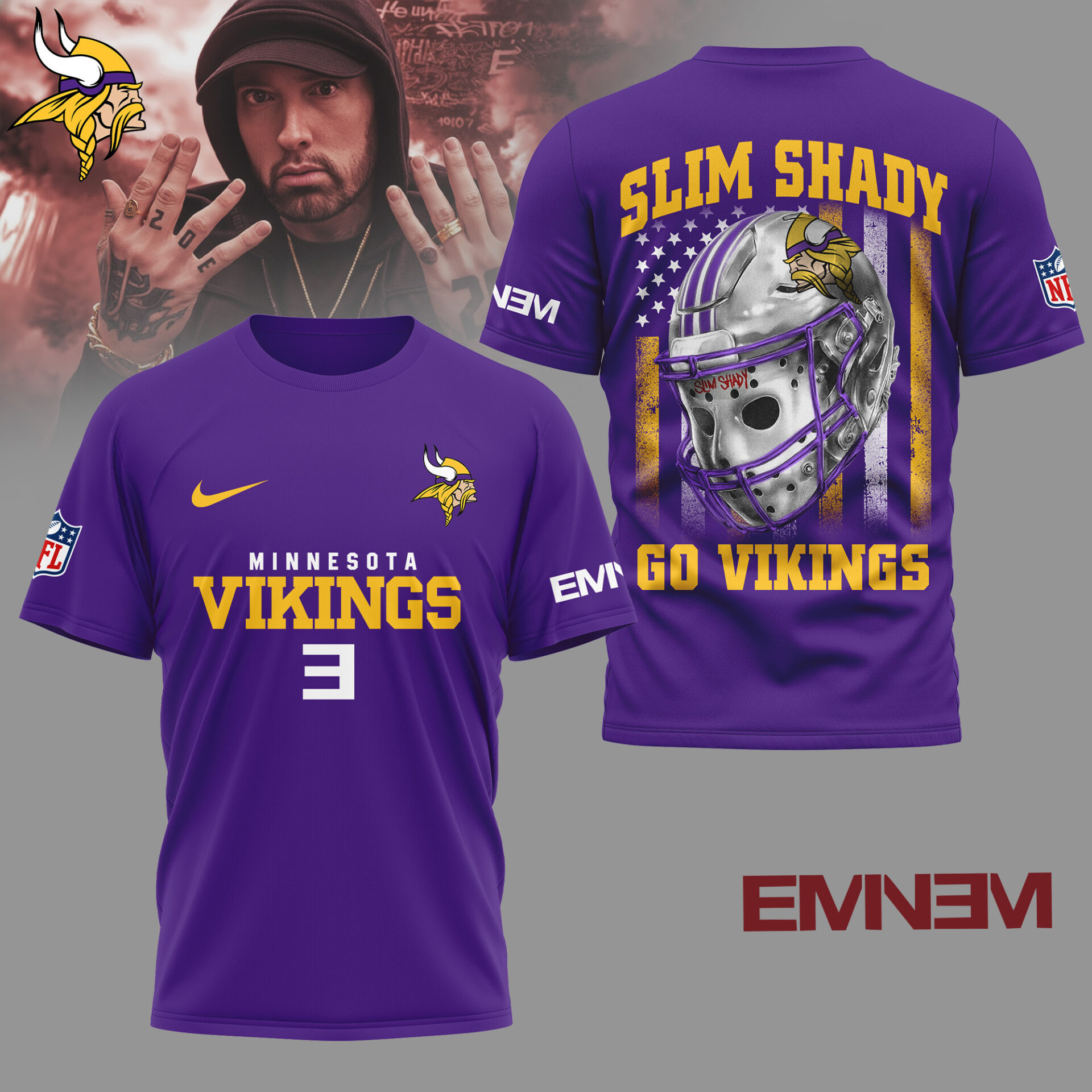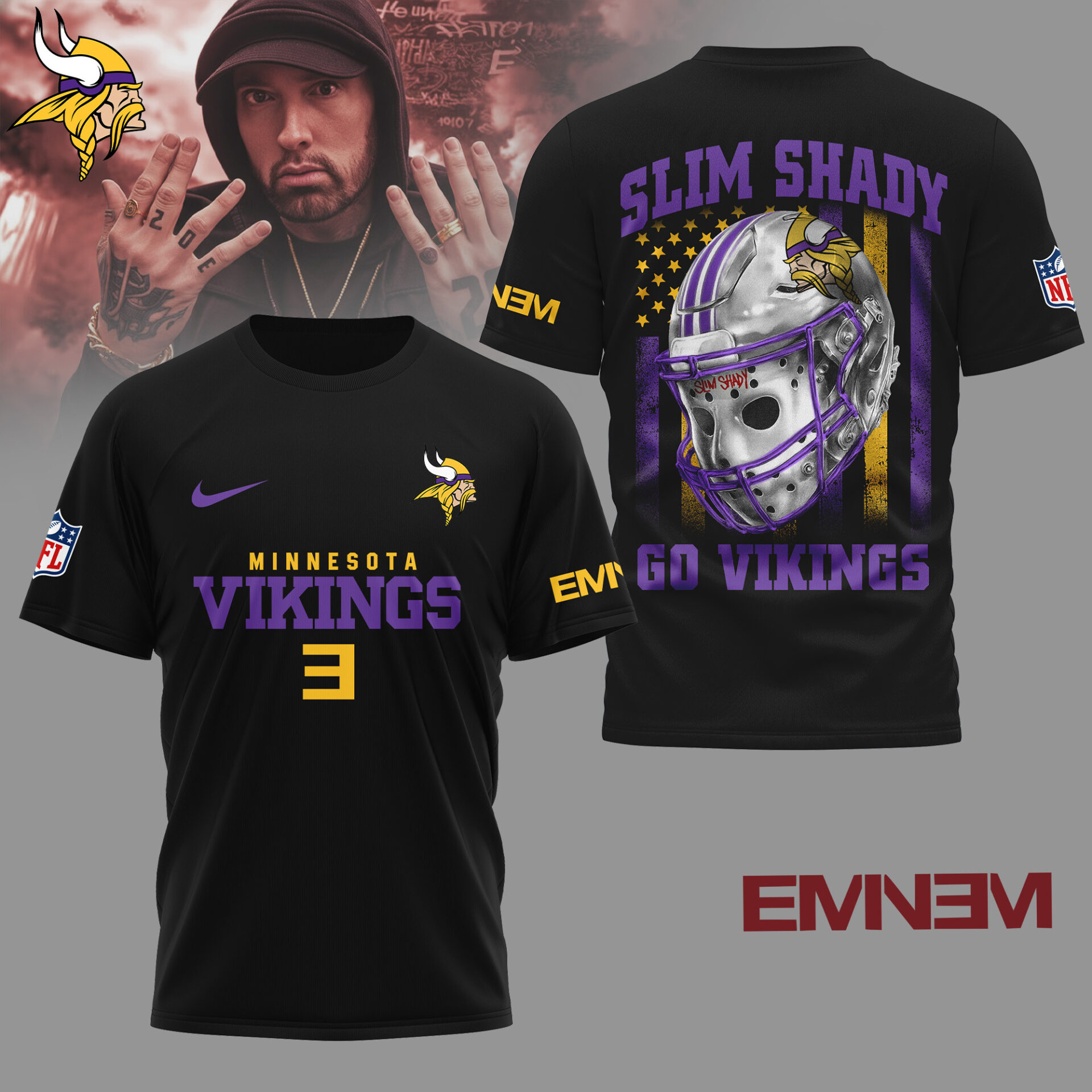 Minnesota Vikings | Premium NFL Eminem Fan 3D Shirt NY