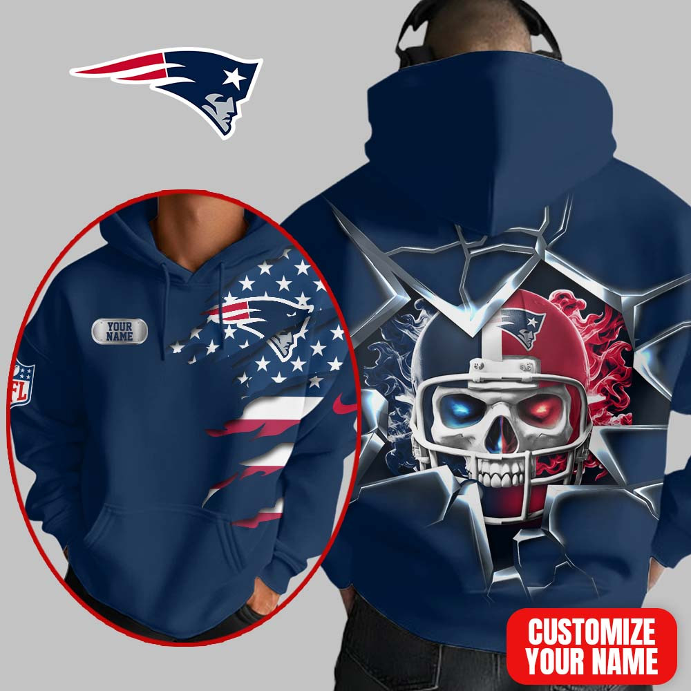 New England Patriots | Premium NFL Customizable Skull Hoodie MM