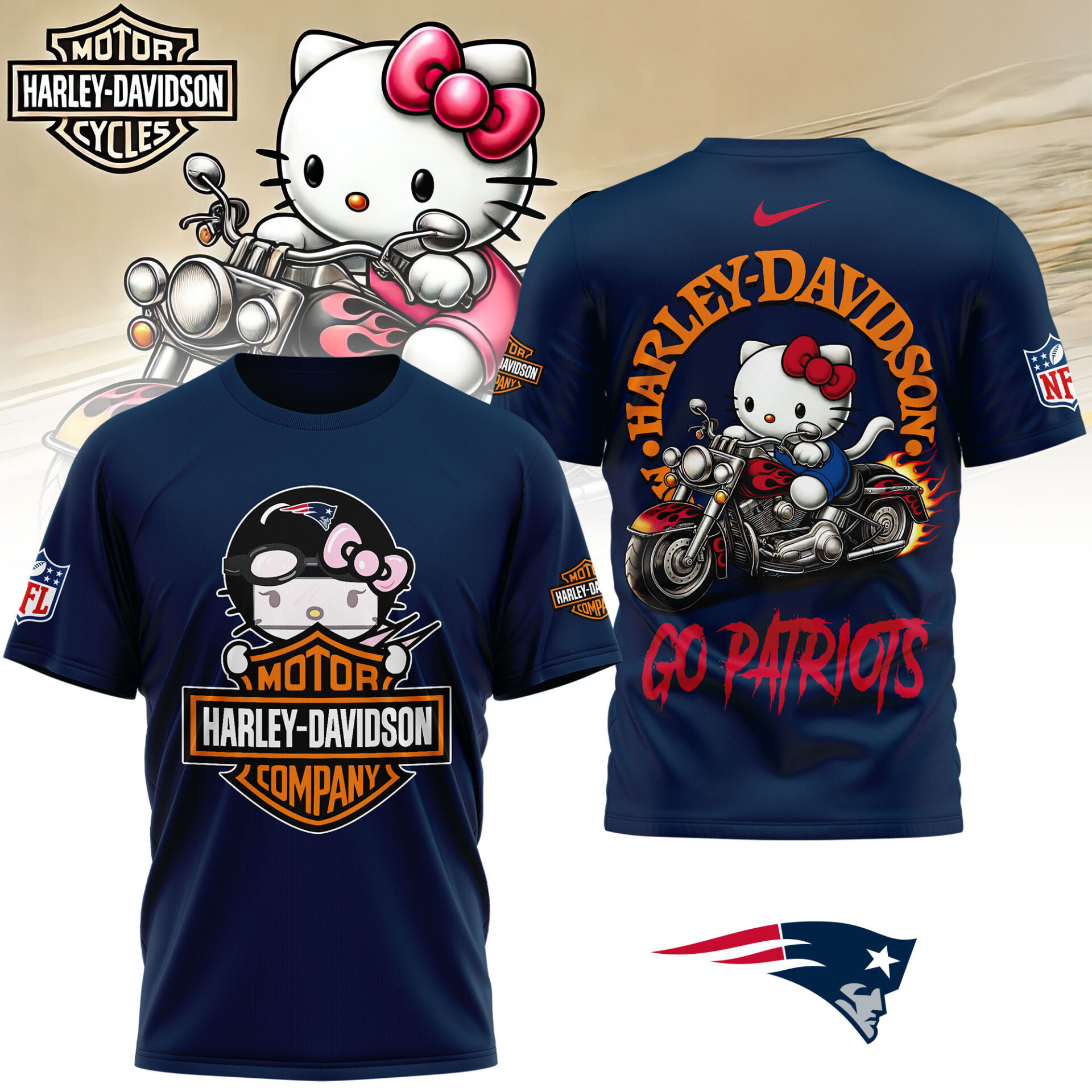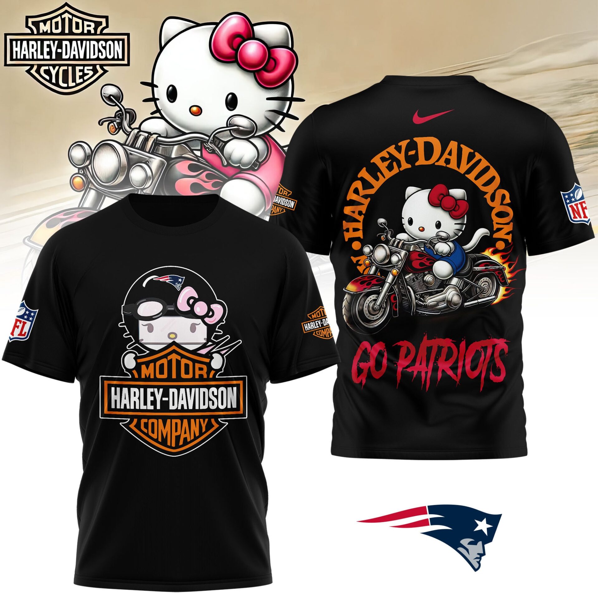 New England Patriots | Premium NFL Hello Kitty Harley Davidson 3D Shirt NY