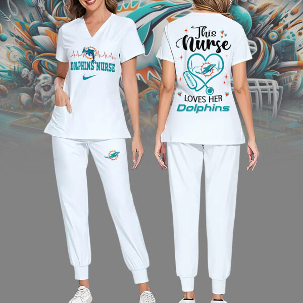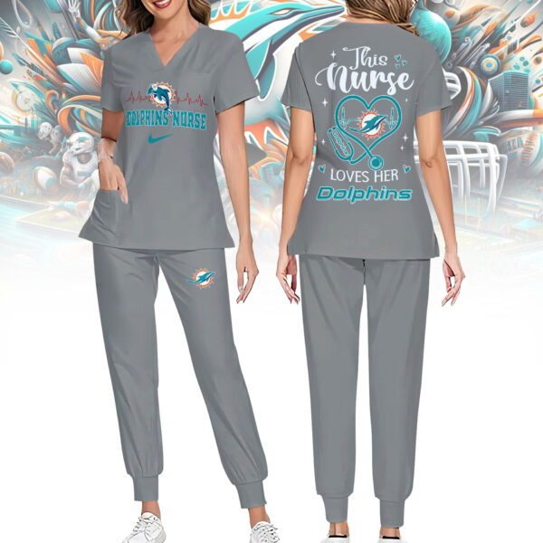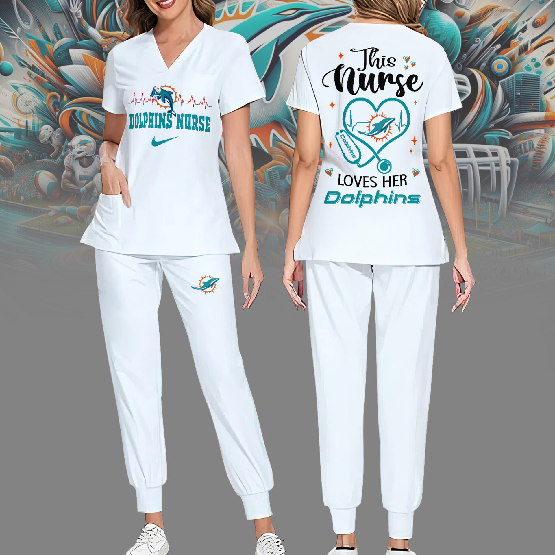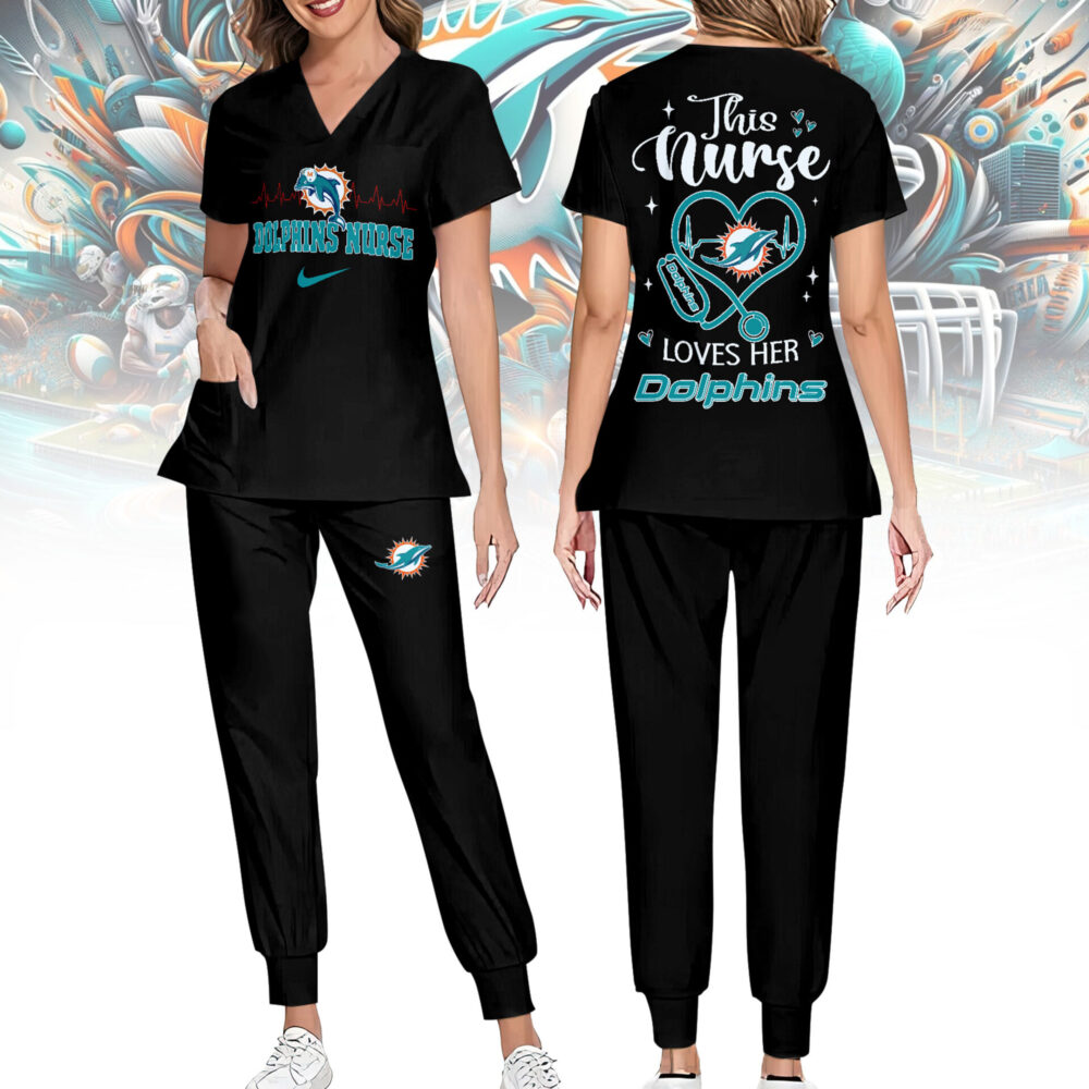 Miami Dolphins | Premium NFL Nurse Appreciation Stretch V-Neck Scrub Top And Jogger Pant NY
