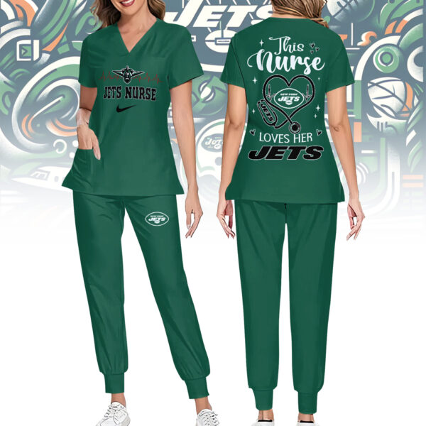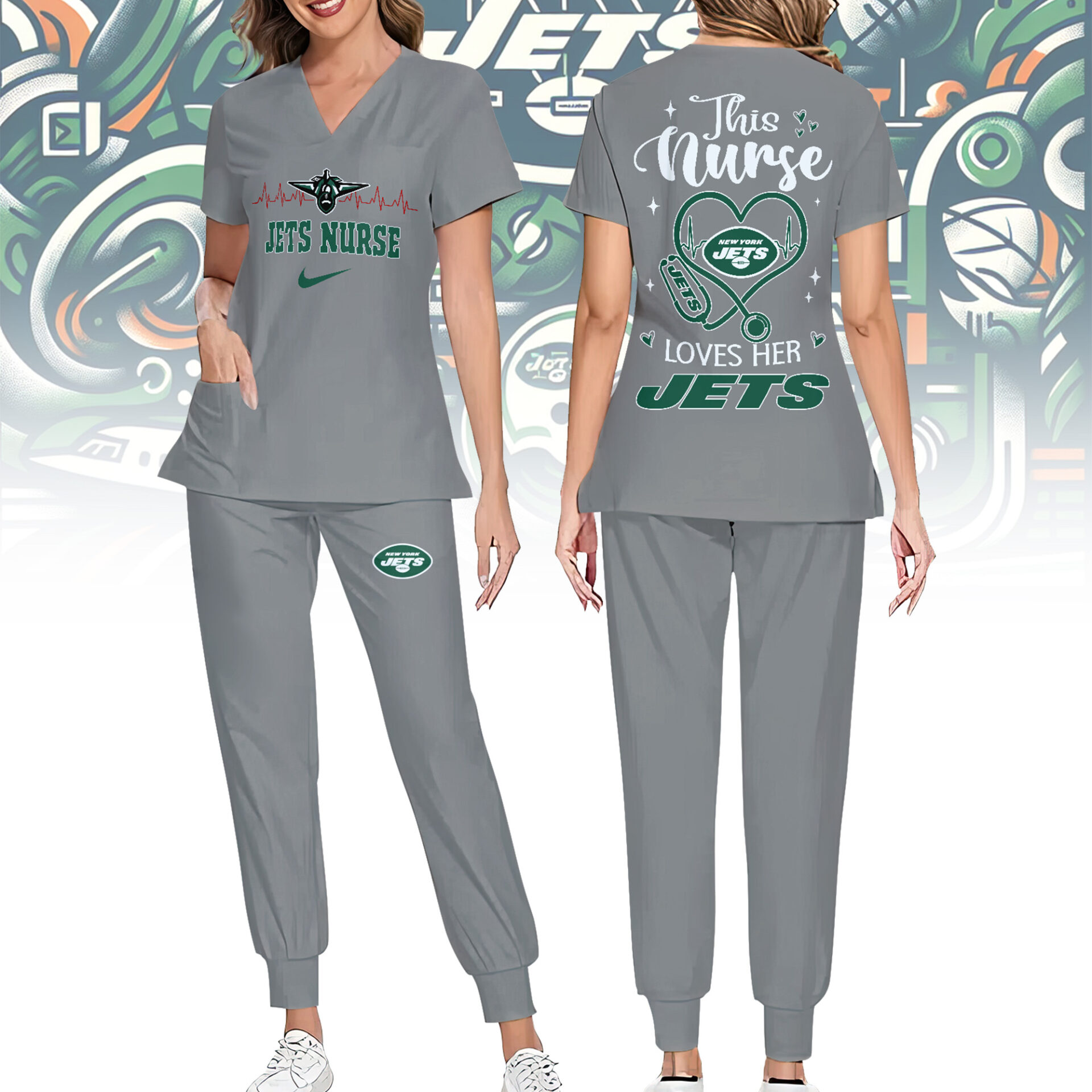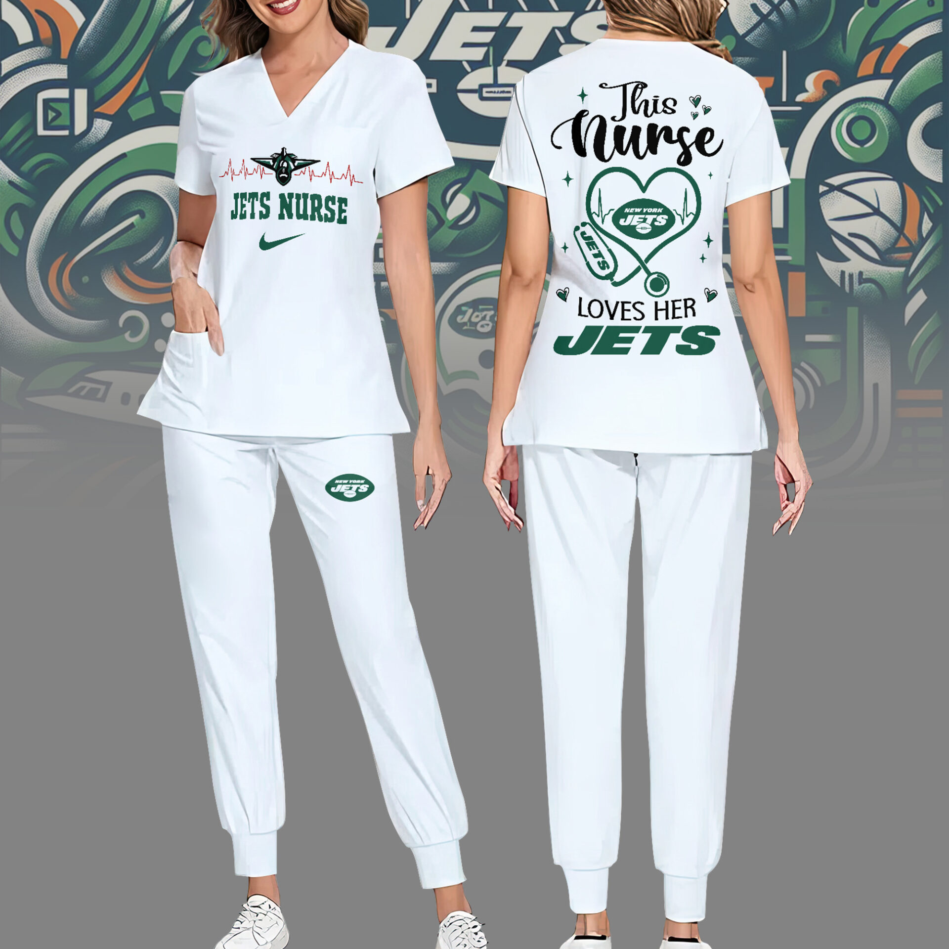 New York Jets | Premium NFL Nurse Appreciation Stretch V-Neck Scrub Top And Jogger Pant NY