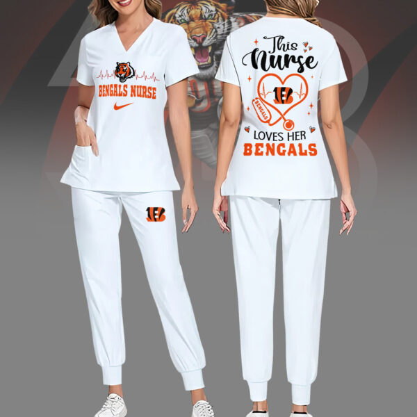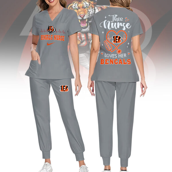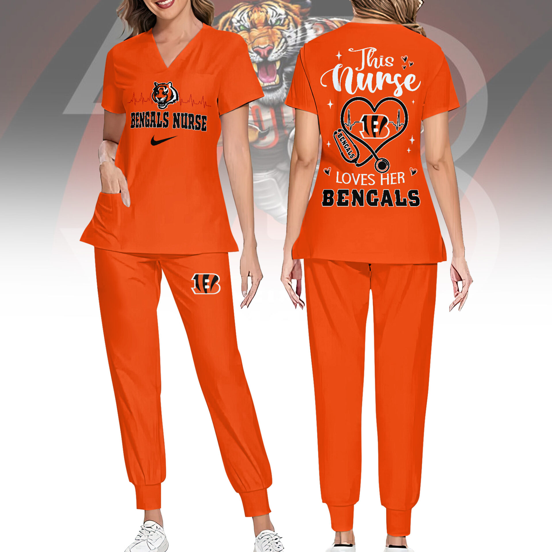 Cincinnati Bengals | Premium NFL Nurse Appreciation Stretch V-Neck Scrub Top And Jogger Pant NY