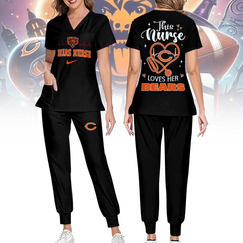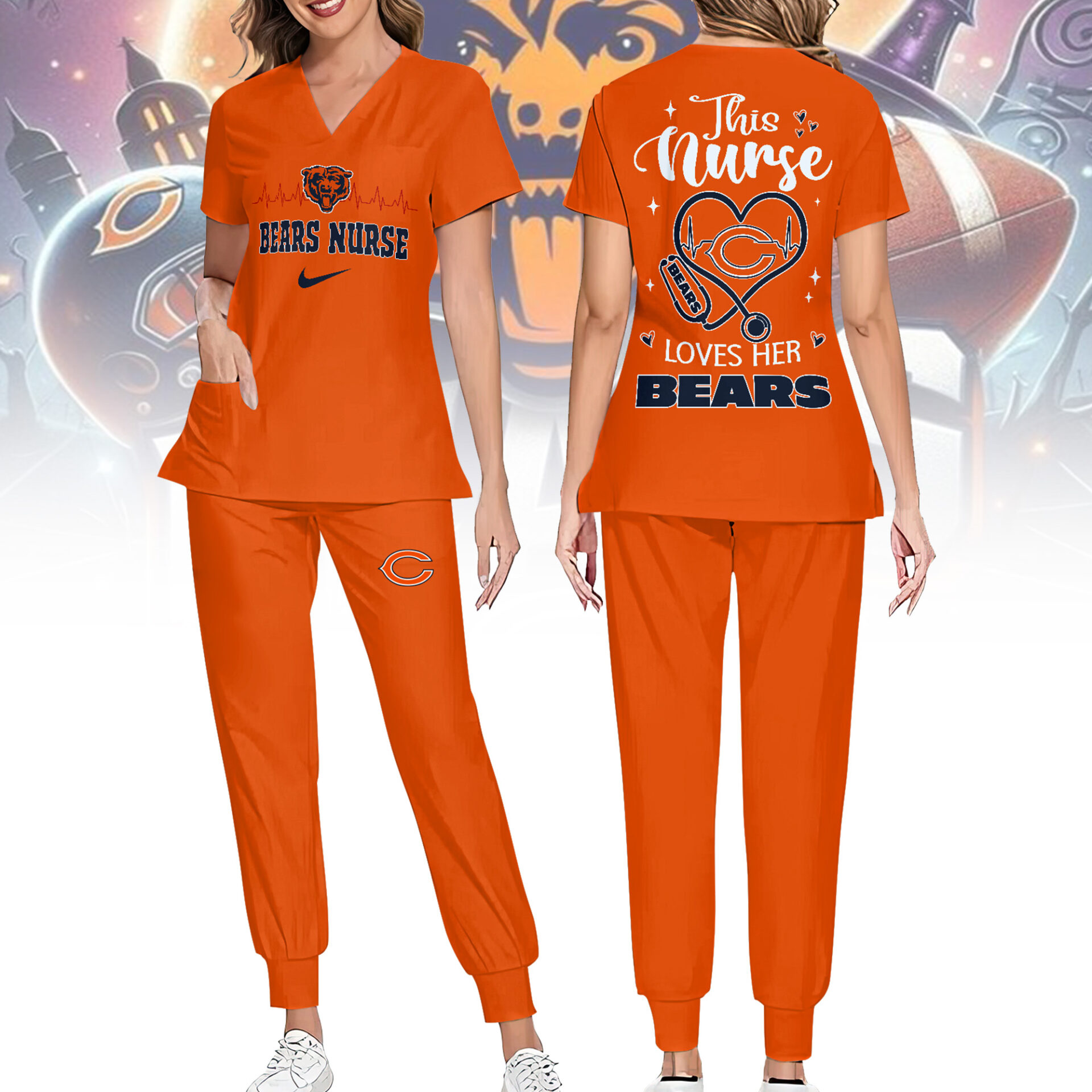 Chicago Bears | Premium NFL Nurse Appreciation Stretch V-Neck Scrub Top And Jogger Pant NY