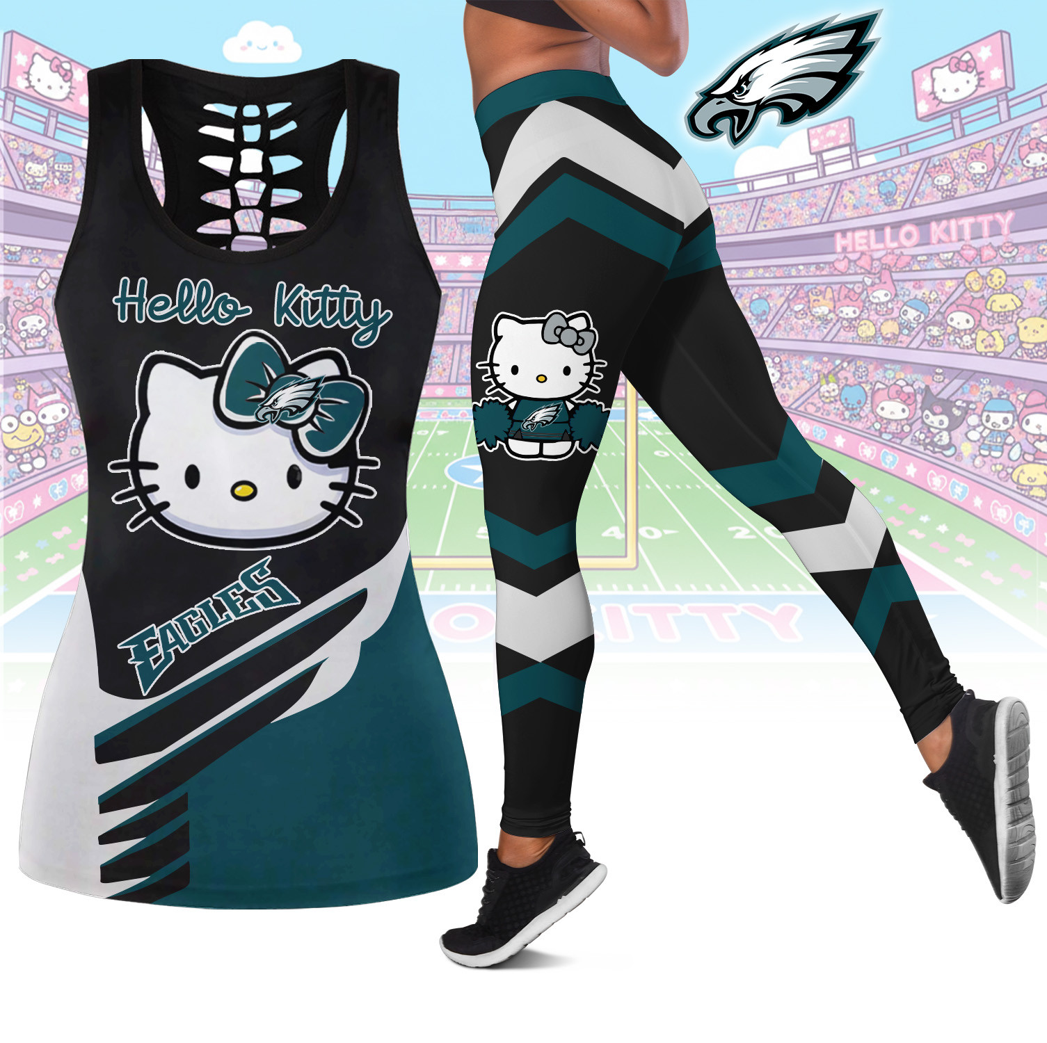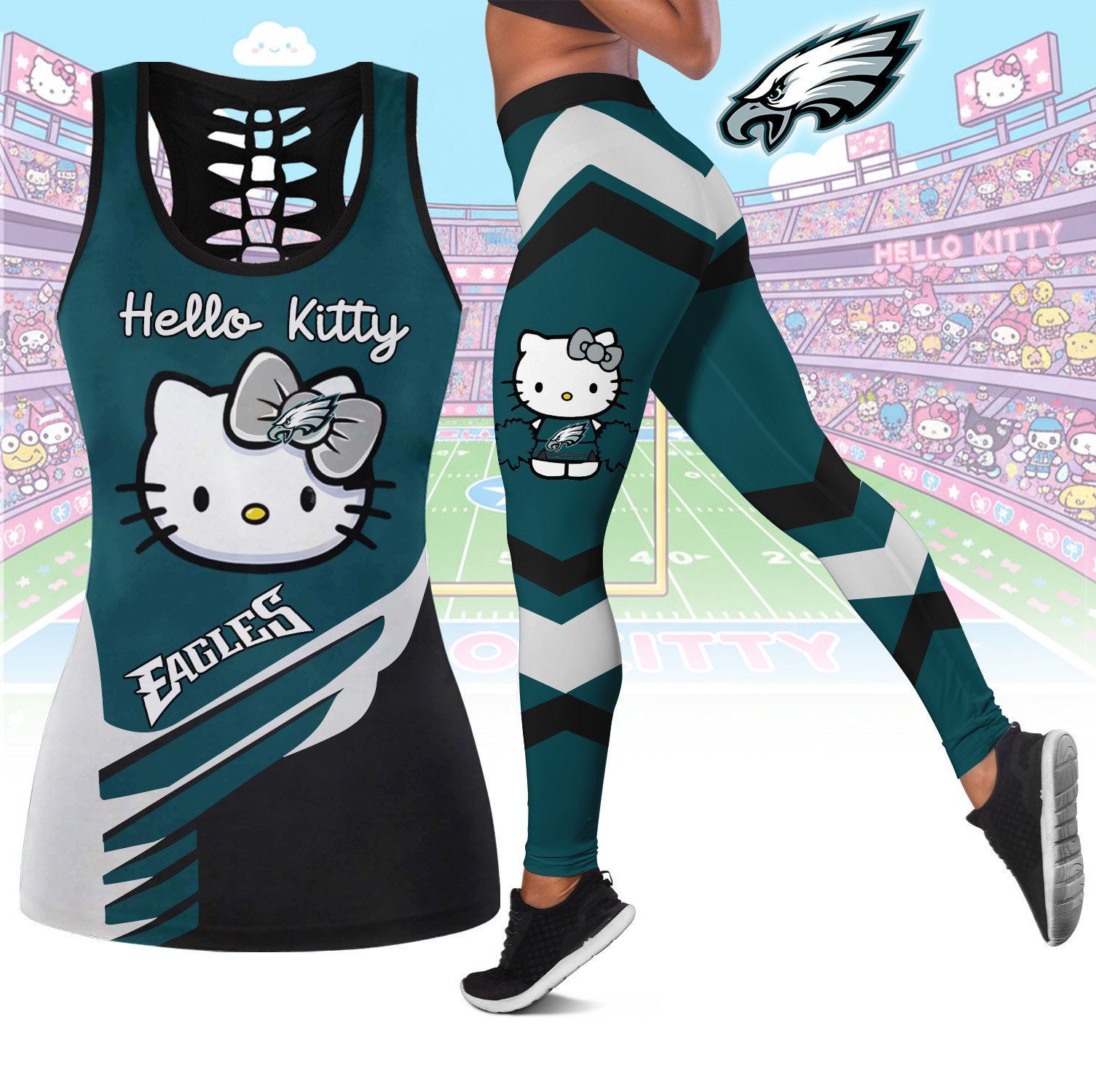 Philadelphia Eagles | Premium NFL Hello Kitty Combo Leggings And Tanktop TD