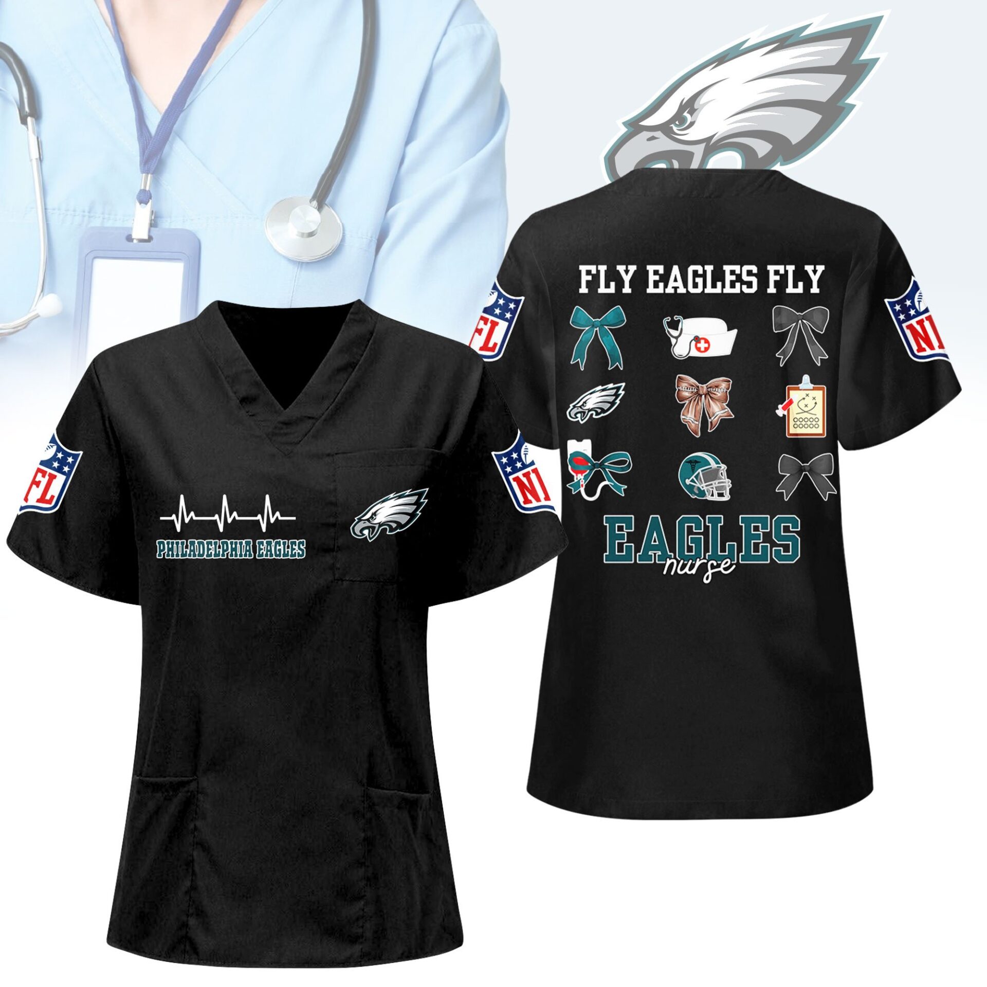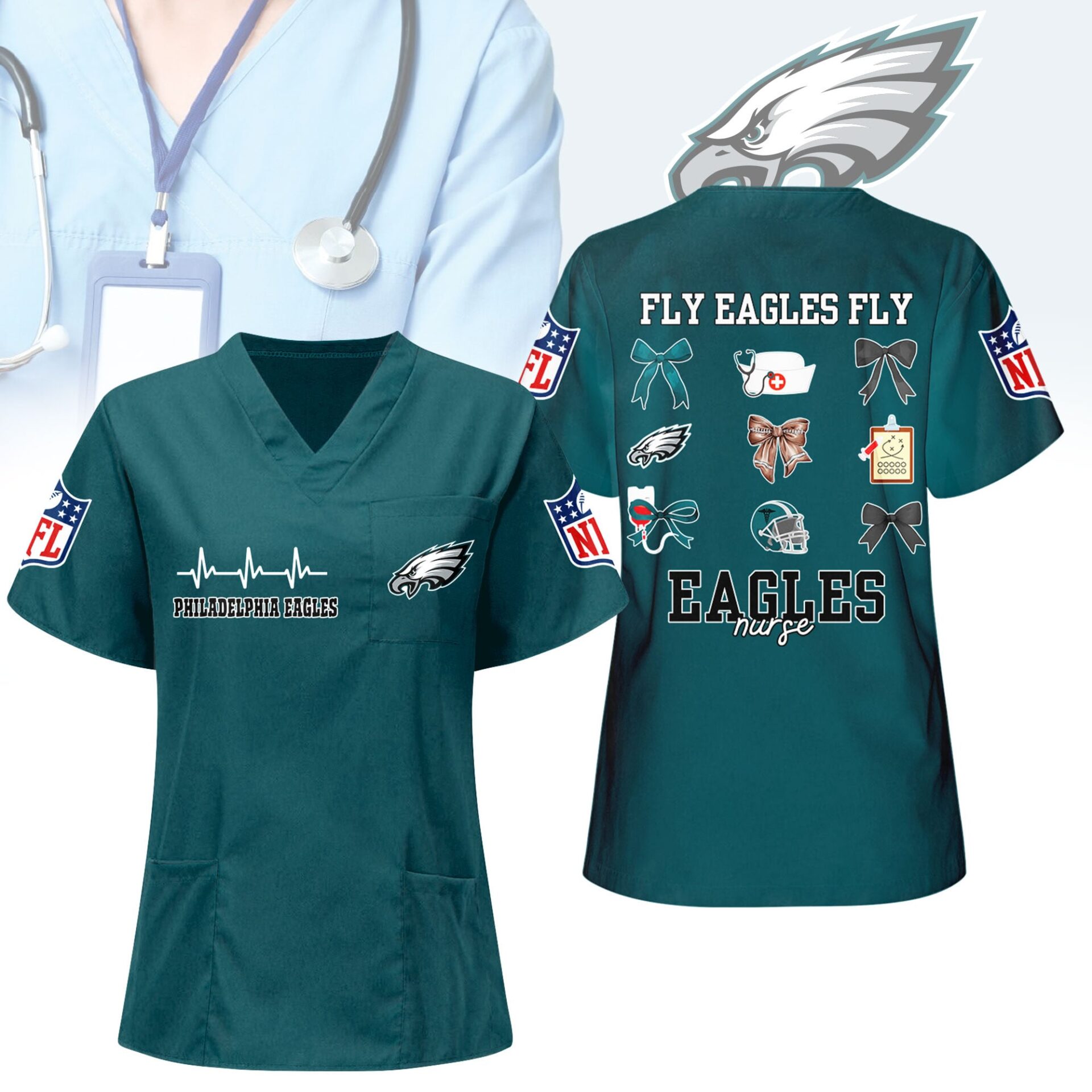 Philadelphia Eagles | Premium NFL Nurse Hearts And Bows Scrub Shirt NY