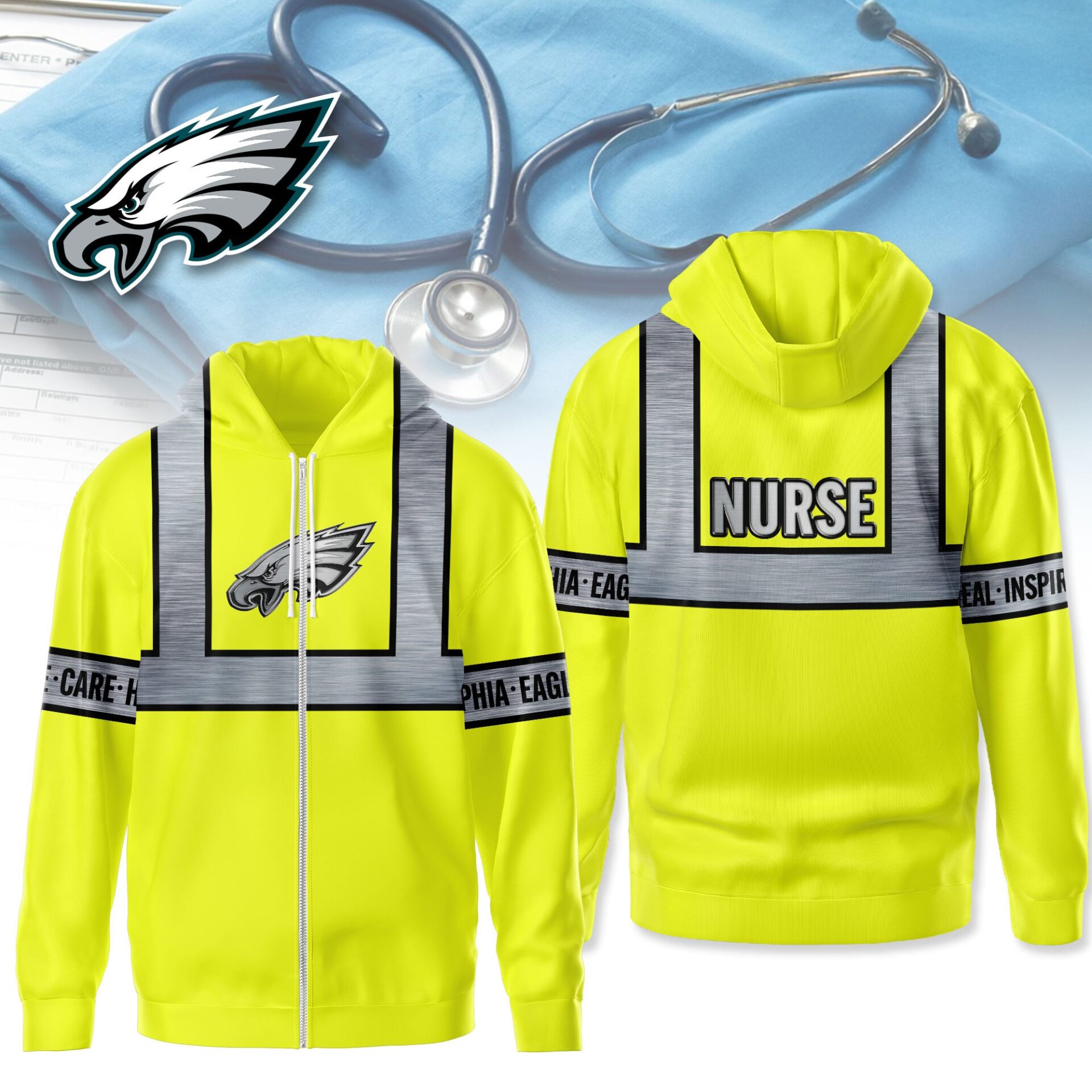 Philadelphia Eagles | Premium NFL Nurse Safrty Hi Vis Hoodie NY