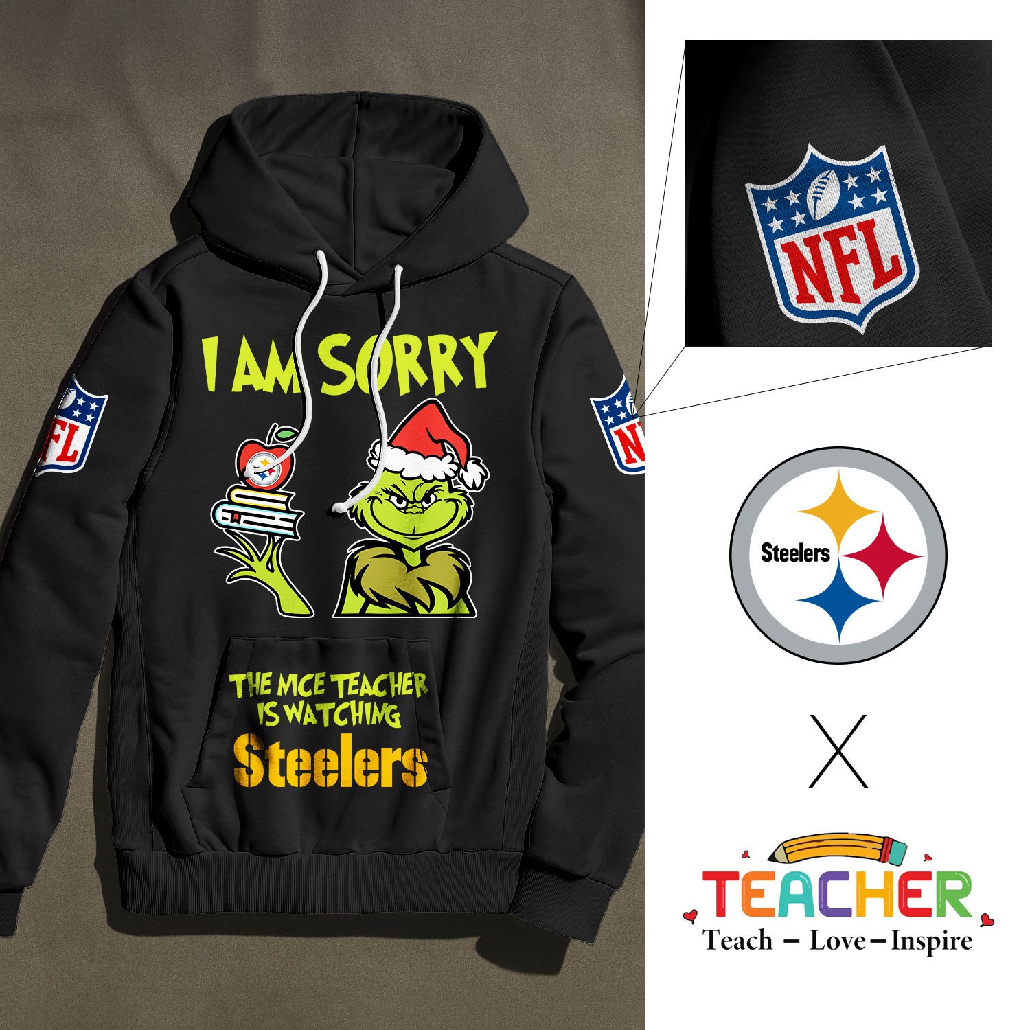 Pittsburgh Steelers | Premium NFL Grinch Teacher Appreciation Hoodie NY