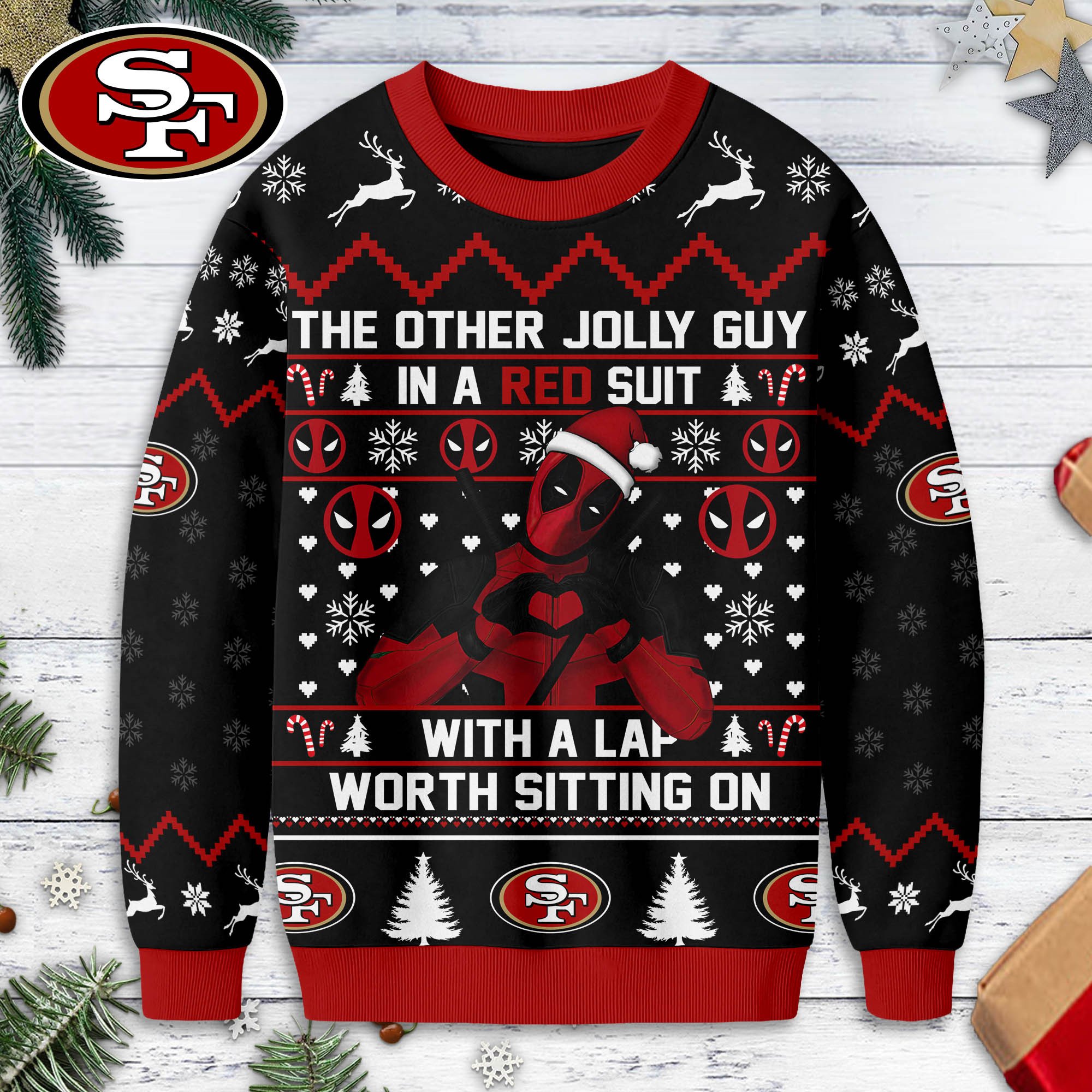 San Francisco 49ers | Premium NFL Deadpool Christmas Ugly Sweater NY