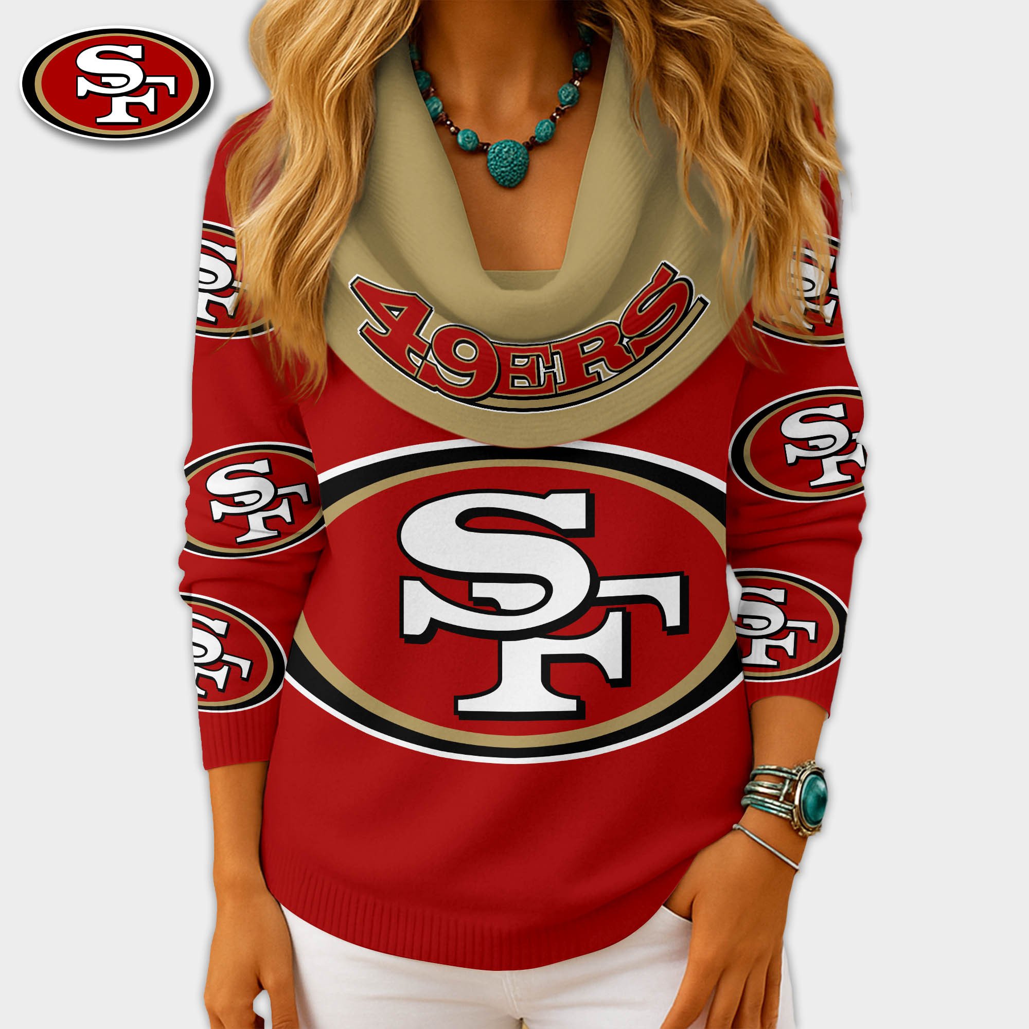 San Francisco 49ers | Premium NFL Fan Cowl Neck Sweater 3D Shirt NY