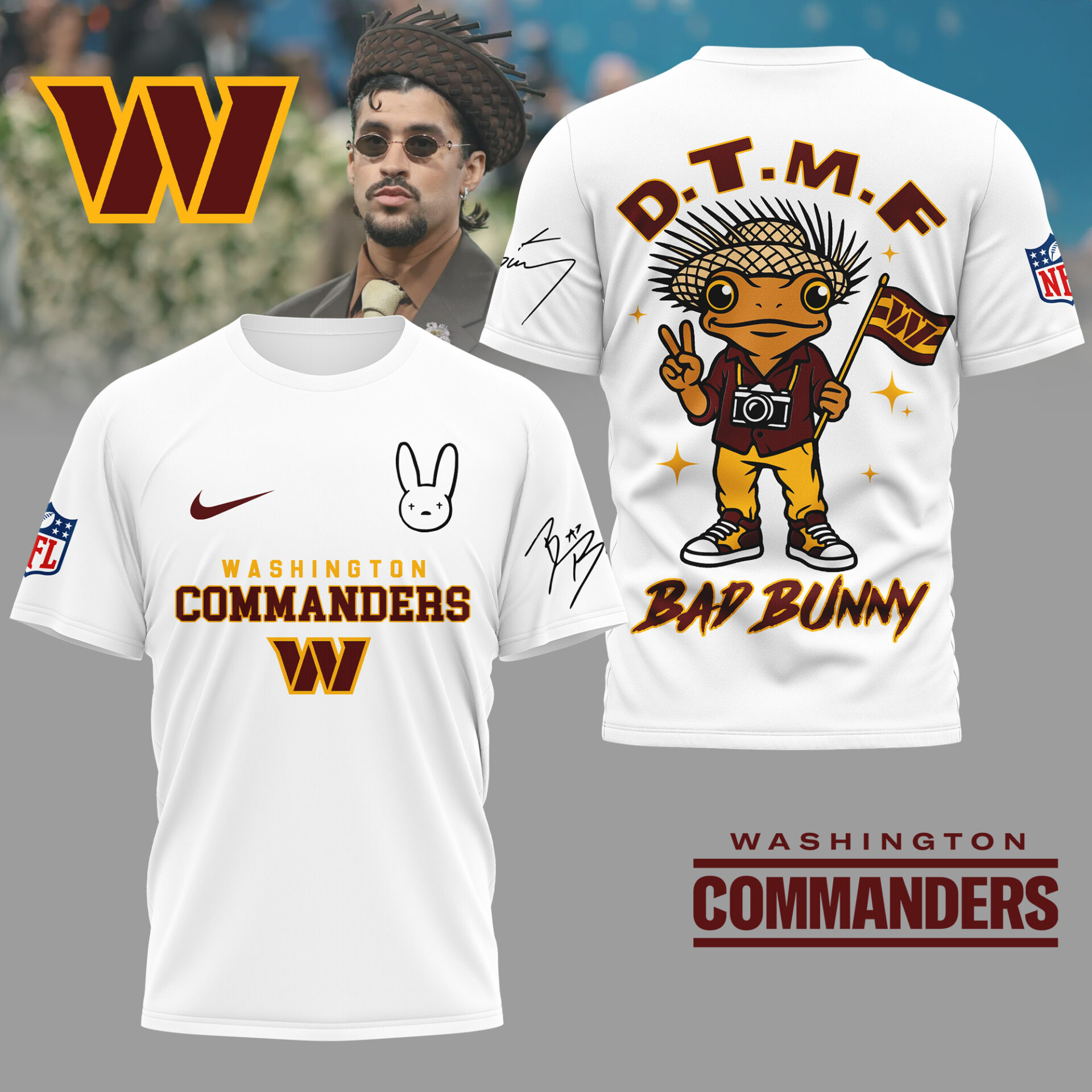 Washington Commanders | Premium NFL Bad Bunny 3D Shirt TD