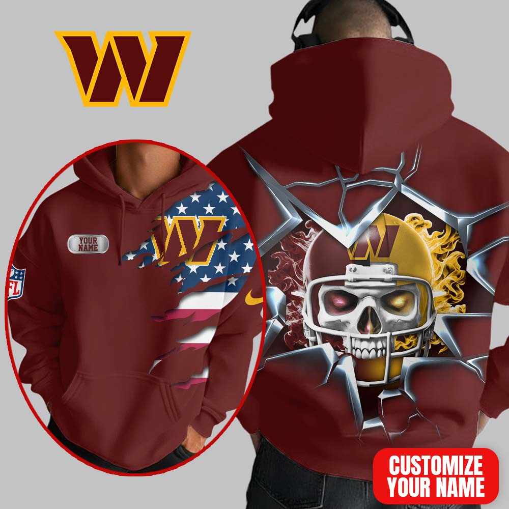 Washington Commanders | Premium NFL Customizable Skull Hoodie MM