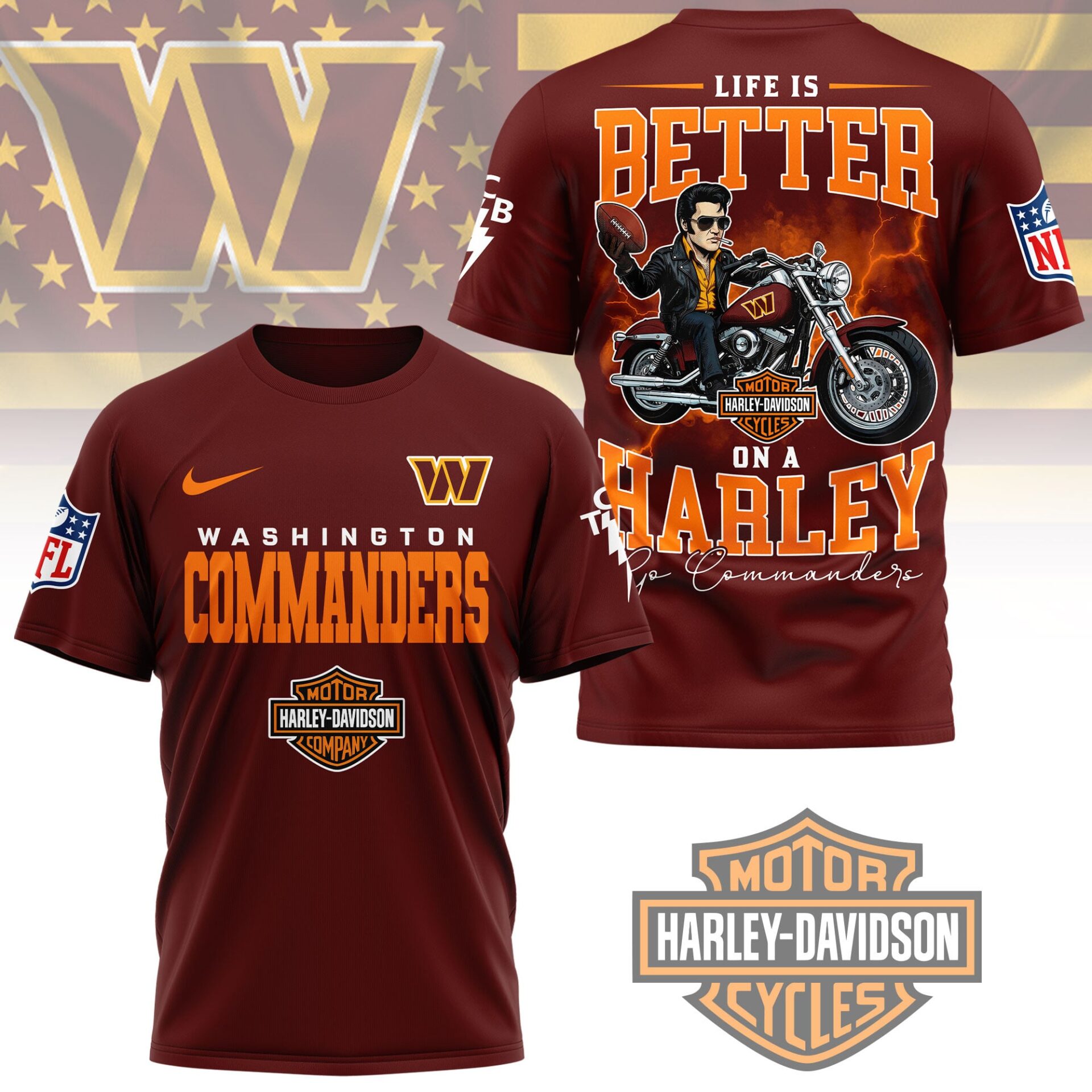 Washington Commanders | Premium NFL Elvis Presley Harley Davidson 3D Shirt NY